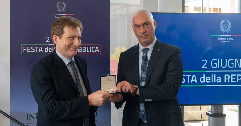 Professor Eduardo Trifoni receiving the Order of the Star of Italy from Italian Ambassador Paolo Crudele