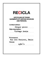 Recicla è il termine con cui Maison Margiela definisce i capi e gli accessori riciclati e riproposti al cliente, attraverso un processo di taglio che libera l'energia celata nel capo e ridona vita al tessuto