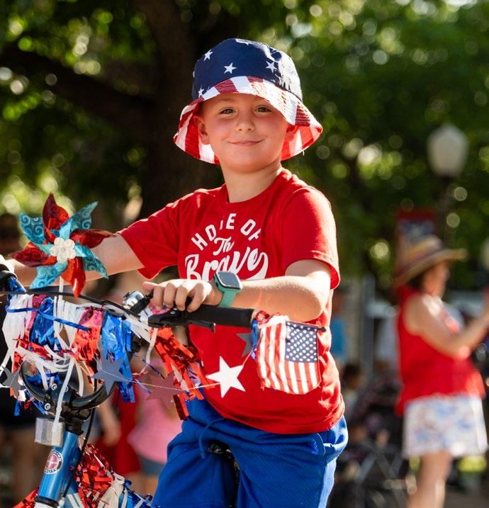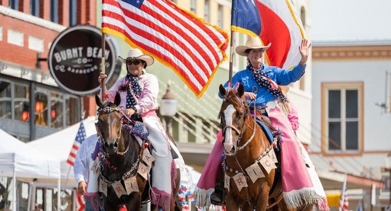 Crowds of flag-waving people will line Austin Street for the annual parade. The floats roll at 10 am. Past crowd estimates have exceeded 10,000. There will be more than a hundred parade entries including floats from local businesses, elected officials, churches, schools, military representatives, and more.