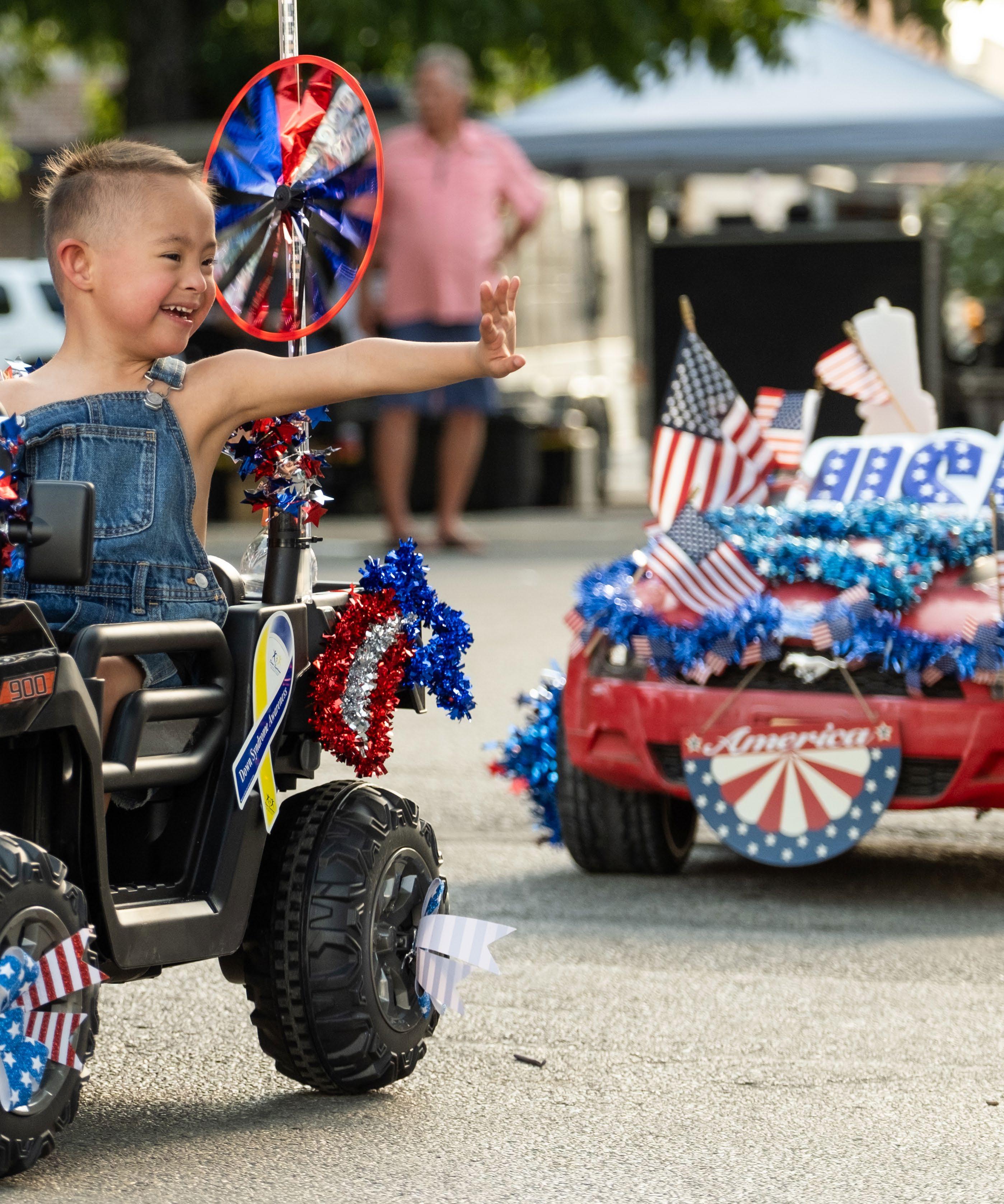 Kids are encouraged to decorate their bikes, scooters, hoverboards, and more in red, white and blue show their patriotism.