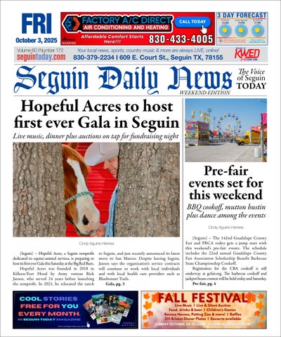 The Seguin Area Chamber of Commerce will have its Annual Banquet & Awards Presentation at 6:30 p.m. on Wednesday, Sept. 18 at the Seguin Coliseum. The doors open at 5 p.m. The theme is Start Spreading the News.