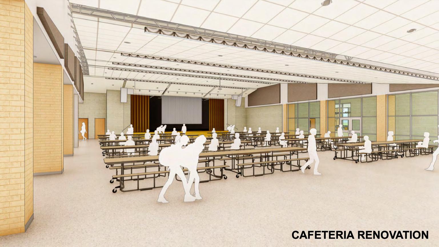 a new platform and expanded cafeteria, dining space for this campus and with those remaining areas of the existing square footage will be reallocating those for the renovated choir room, a black box, a drama space and the band rehearsal hall,” said Popa.