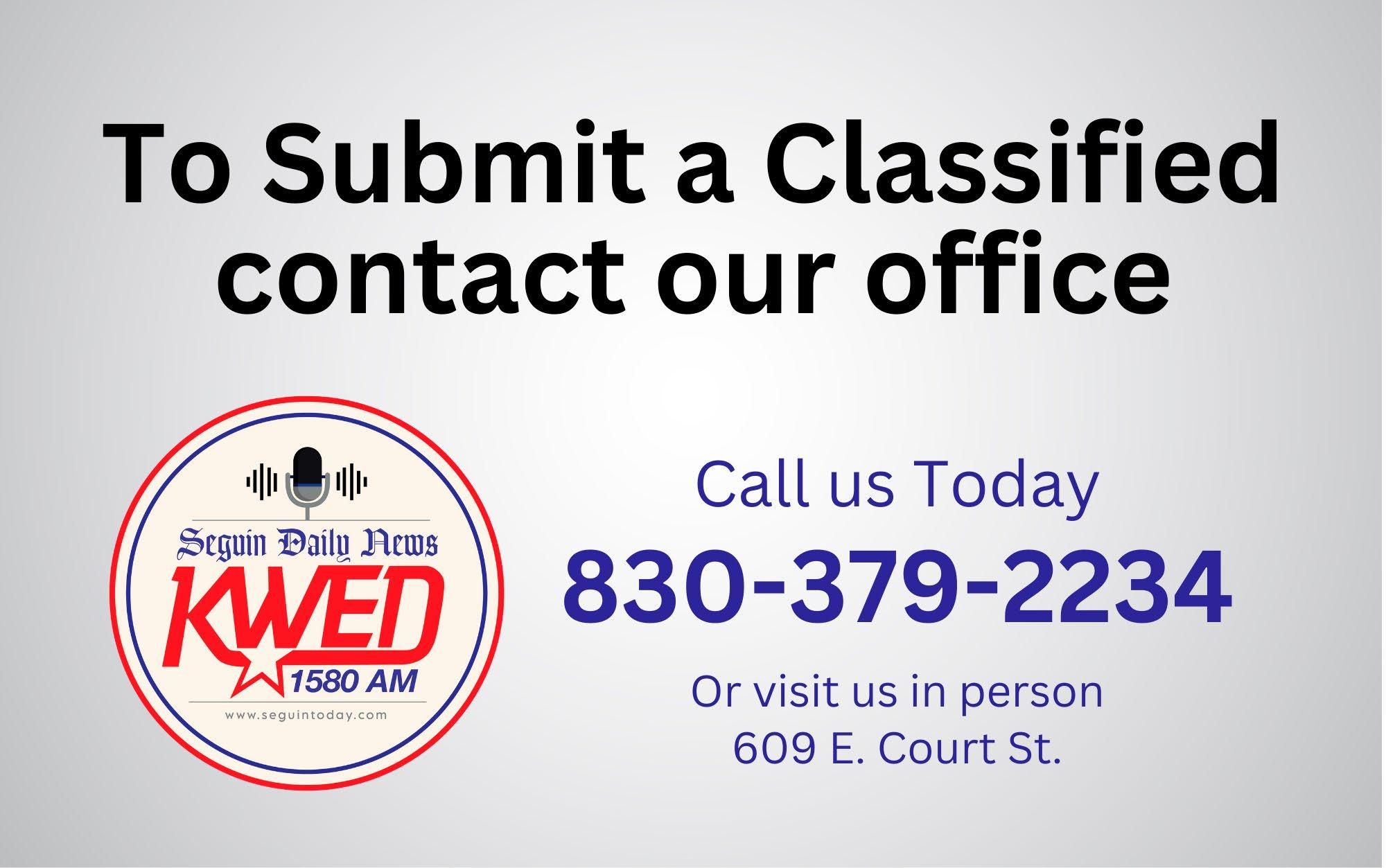 To ensure non-profit organization’s meetings and events appear in this calendar, send information to: communitycalendar@kwed1580.com, or drop off the information at the Seguin Daily News/KWED offices located at 609 E. Court St. in Seguin. For best results, submit information at least two weeks prior to the event.
