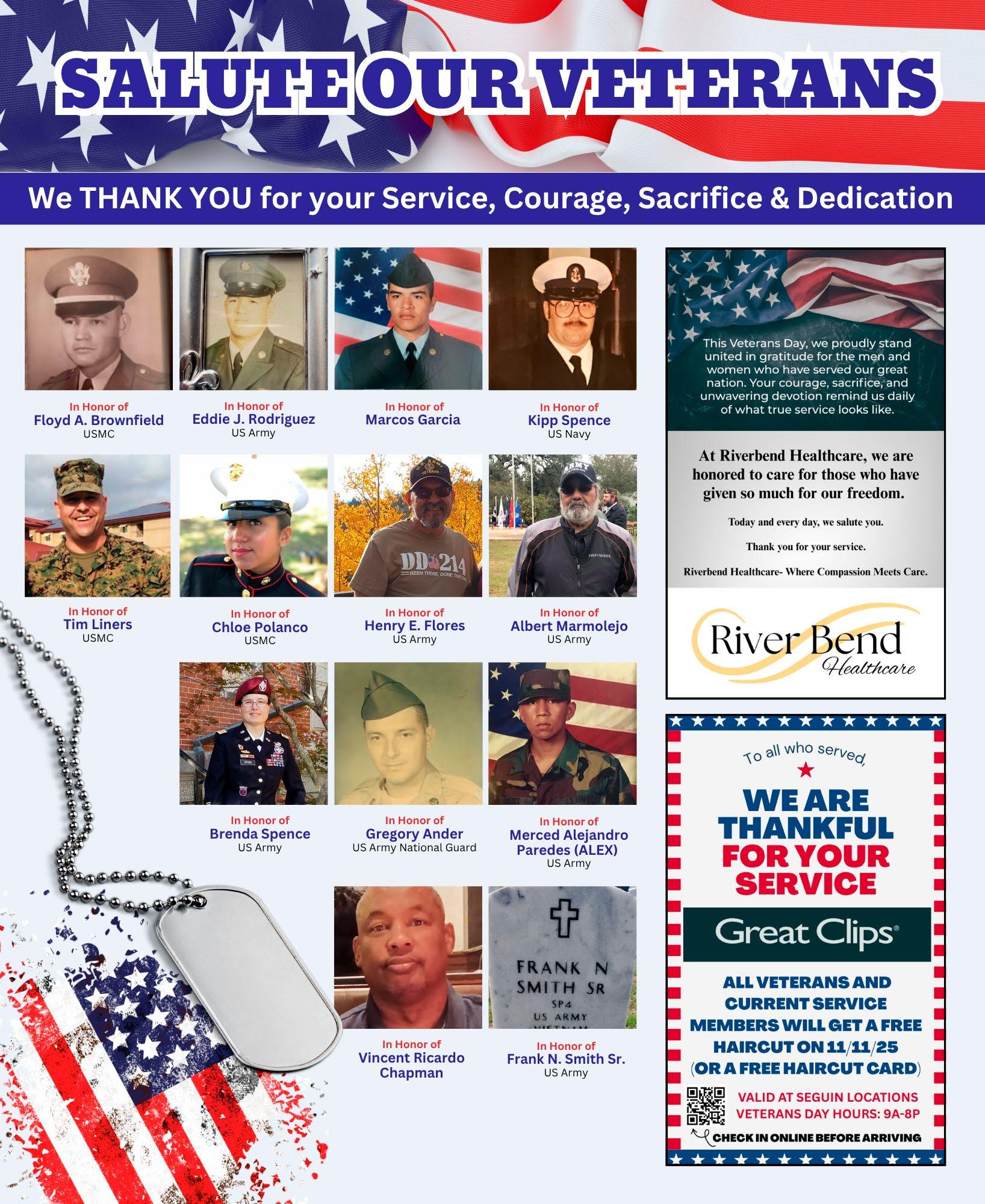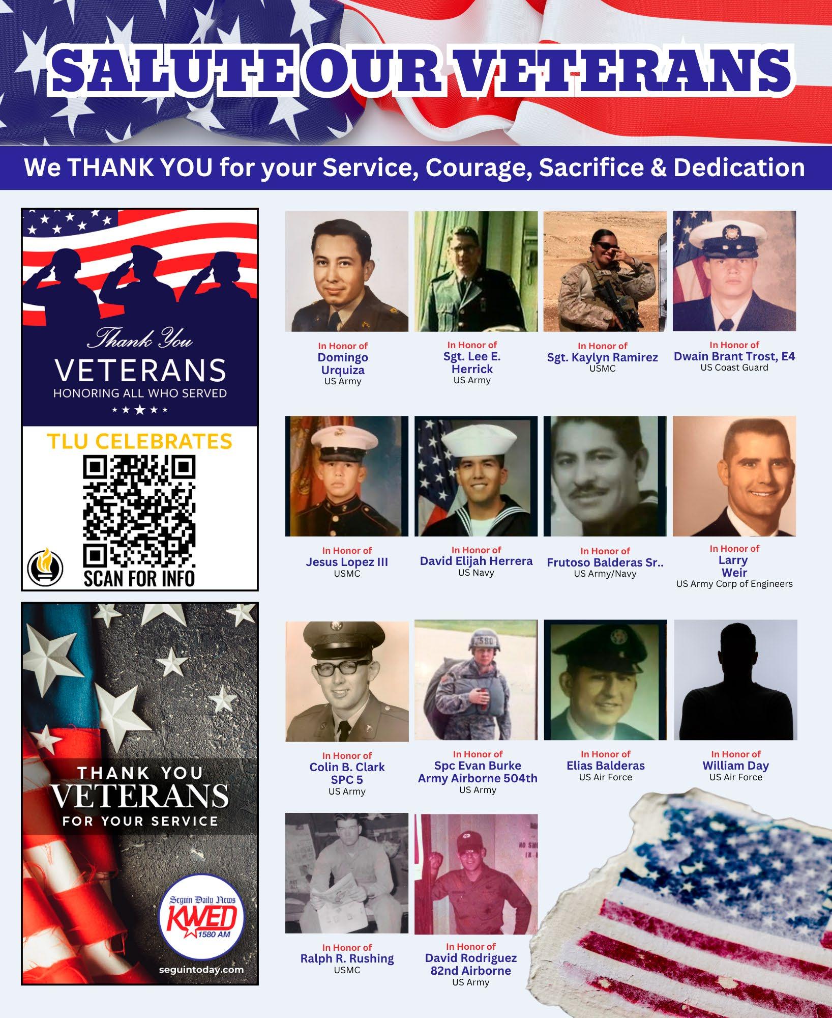 The Seguin Field of Honor® will be hosting its annual flag display featuring 300 flags at Smokey Joe Williams Ball Field from November 11 through November 15, open 24 hours a day. Flags may be sponsored or dedicated for $35 each, with proceeds benefiting the Doug Herrle DAV Chapter 61 in Seguin to help defray the cost of the Veterans Wall. Volunteers are needed to assemble flags at 10:00 AM on Sunday, November 9, at MidWay Hall, and to assist with setup beginning at 7:30 AM on Monday, November 10. The Veterans Day Parade will begin at 9:00 AM on Tuesday, November 11, followed by an assembly at the Seguin Coliseum and Opening Ceremonies at the field, featuring speakers, music, food trucks, and a 12:30 PM helicopter flyover.
