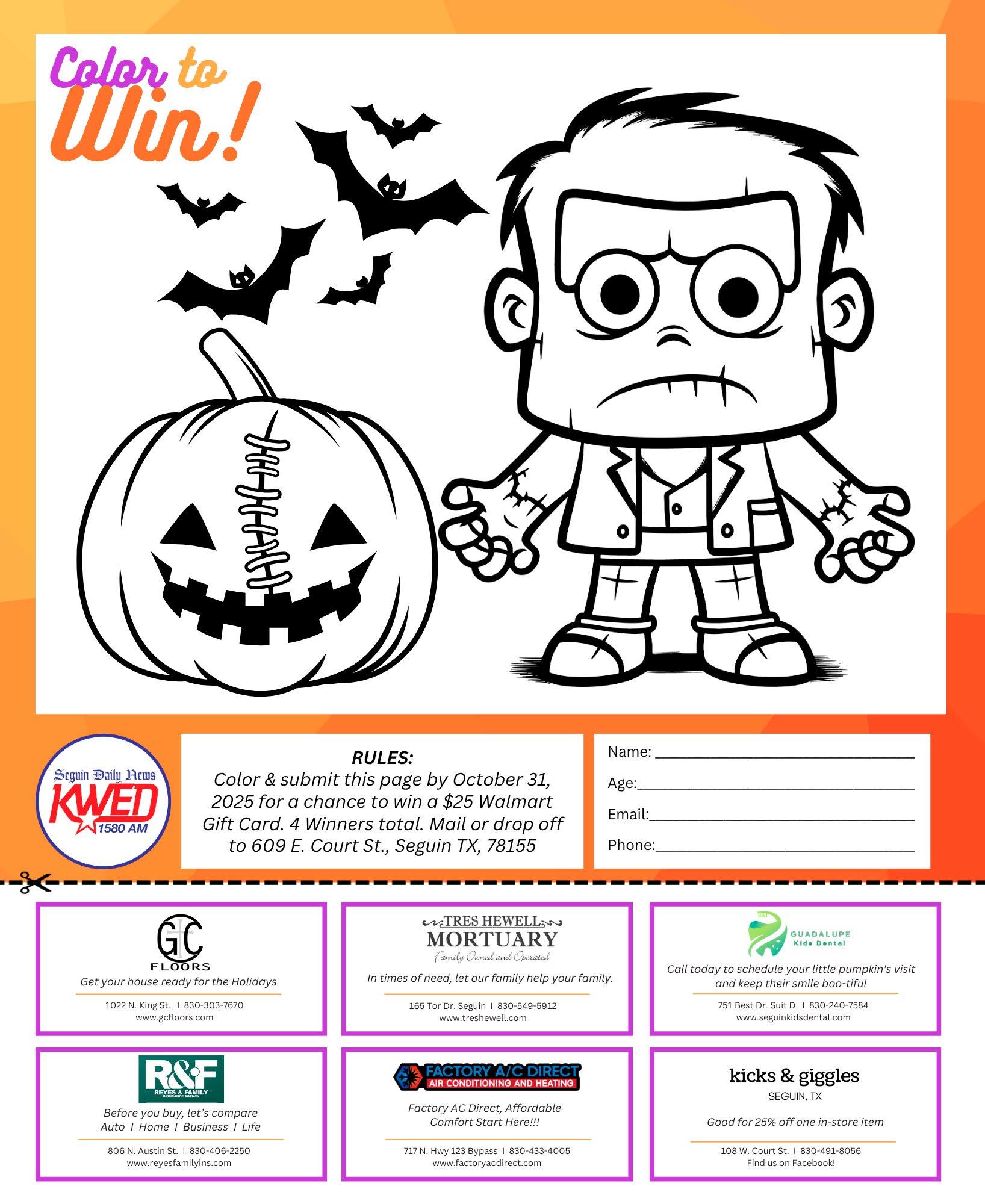Spooktacular Fall Fest & Health Fair 3 to 6 p.m. Saturday, Oct. 25 at Beyond Coffee, Rapid Urgent Car, and Seguin Wellness & MedSpa at 920 W. Court St. Pumpkin patch photo, candy, cookie and pumpkin decorating plus health screenings.