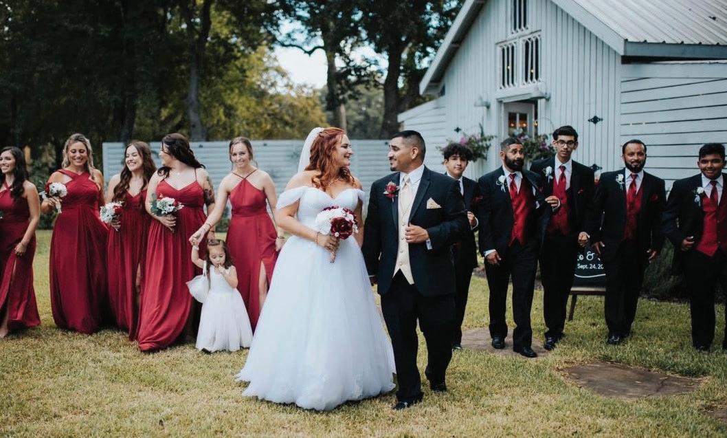 An intimate wedding with about five groomsmen and five bridesmaids helped the newly minted Mr. and Mrs. Faris celebrate with about 130 important people in their lives as guests.
