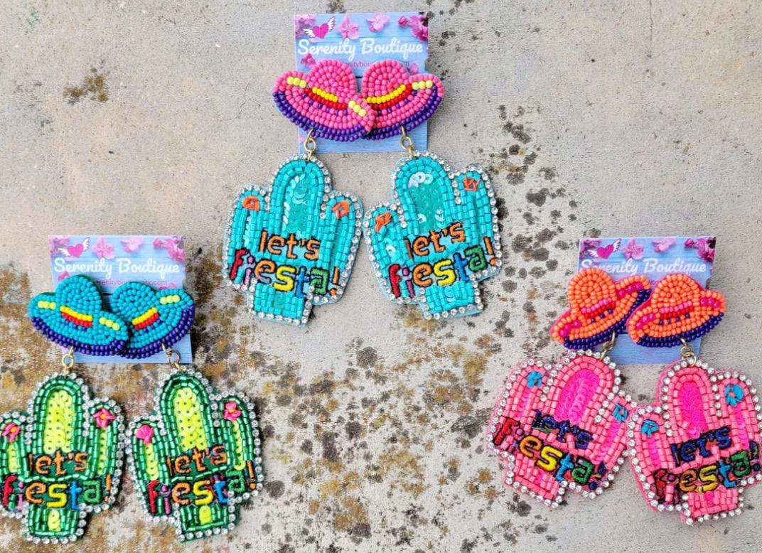 These eye-catching earrings put people into a fiesta state of mind. With fun beads and a colorful, cactus fiesta charm, these earrings will get attention and are sure to make people smile and think of celebrating.
