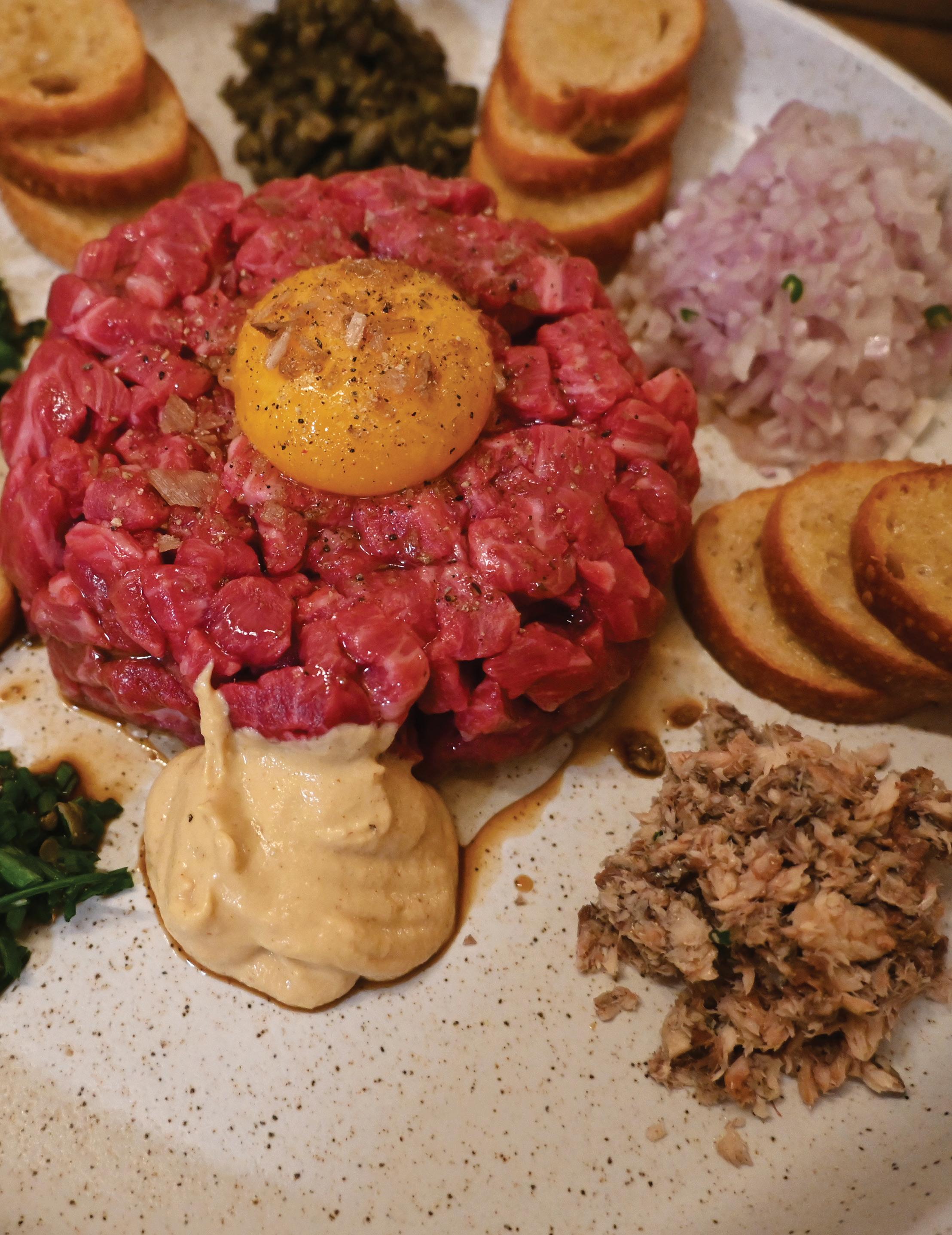 The first is going to be an appetizer. Something I’ve wanted to make at home for some time but hadn’t come across the opportunity, beef tartare. There are a few things to note with tartare. First, the beef is raw. If that’s a hard no for you at that point, it’s completely understandable. The beef is mostly safe to eat raw as long as it is handled properly, vacuum sealed, flash frozen, and not left thawed over an extended time period. Second, because it is raw, I have to put in a disclaimer that I’m not telling you to eat this. Neither this magazine nor I can be held responsible for the consumption of undercooked meat, but I will tell you right now: it is amazing.