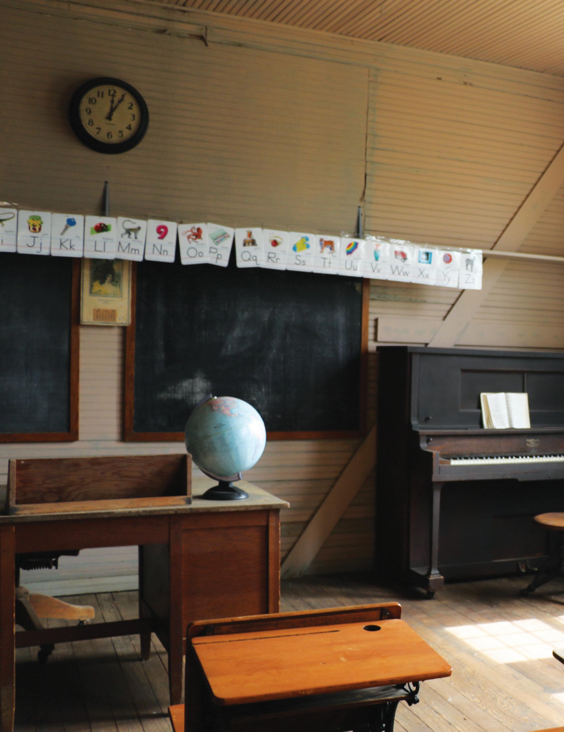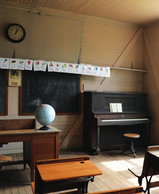 The one-room school house is always a stop on field trips, with blackboards, unique desks and, of course, a piano. Wilman says volunteers take younger kids to see how school used to