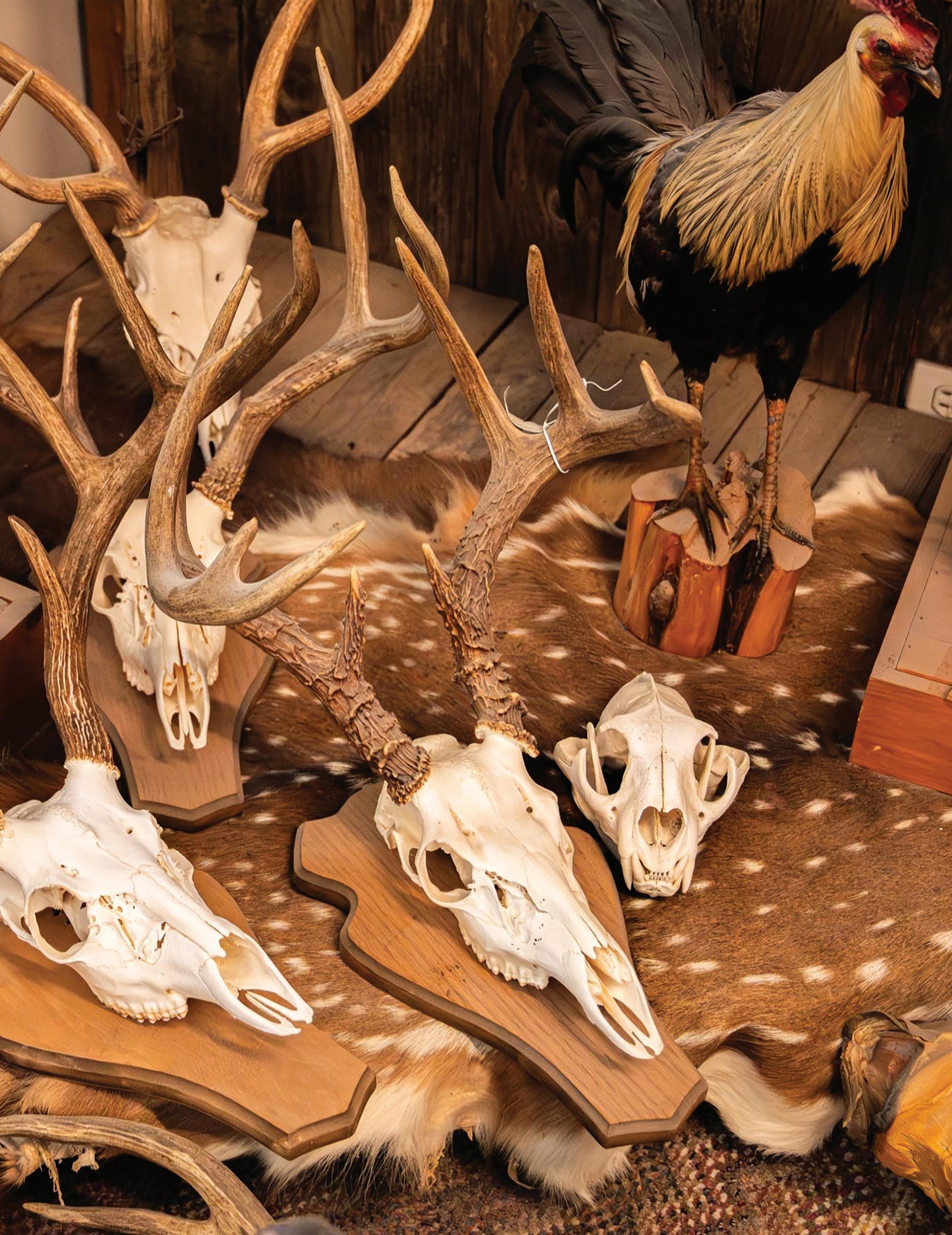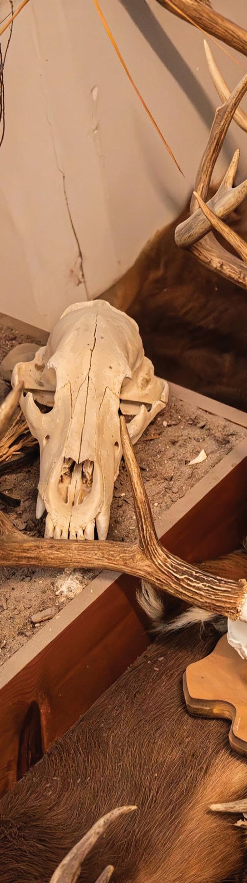 Idon’t hunt. I’ve never worn camo in the woods or waited in a deer blind at sunrise. I don’t eat venison, pork or beef. But taxidermy? I weirdly love it. Maybe shamefully so. There’s something about the stillness in preserved things that has always fascinated me. The delicate structure of a skull, the shimmer of an iridescent beetle wing, the softness of a fox tail. (And, yes, if you know me in real life, two fox tails do occasionally hang from my side like some kind of goth prairie witch starter pack.) So, no, I may not be into hunting, but I’ve always been drawn to the beauty of what’s left behind. The artistry in preservation. The way something once wild can be remembered with reverence, weirdness and a little sparkle of science.