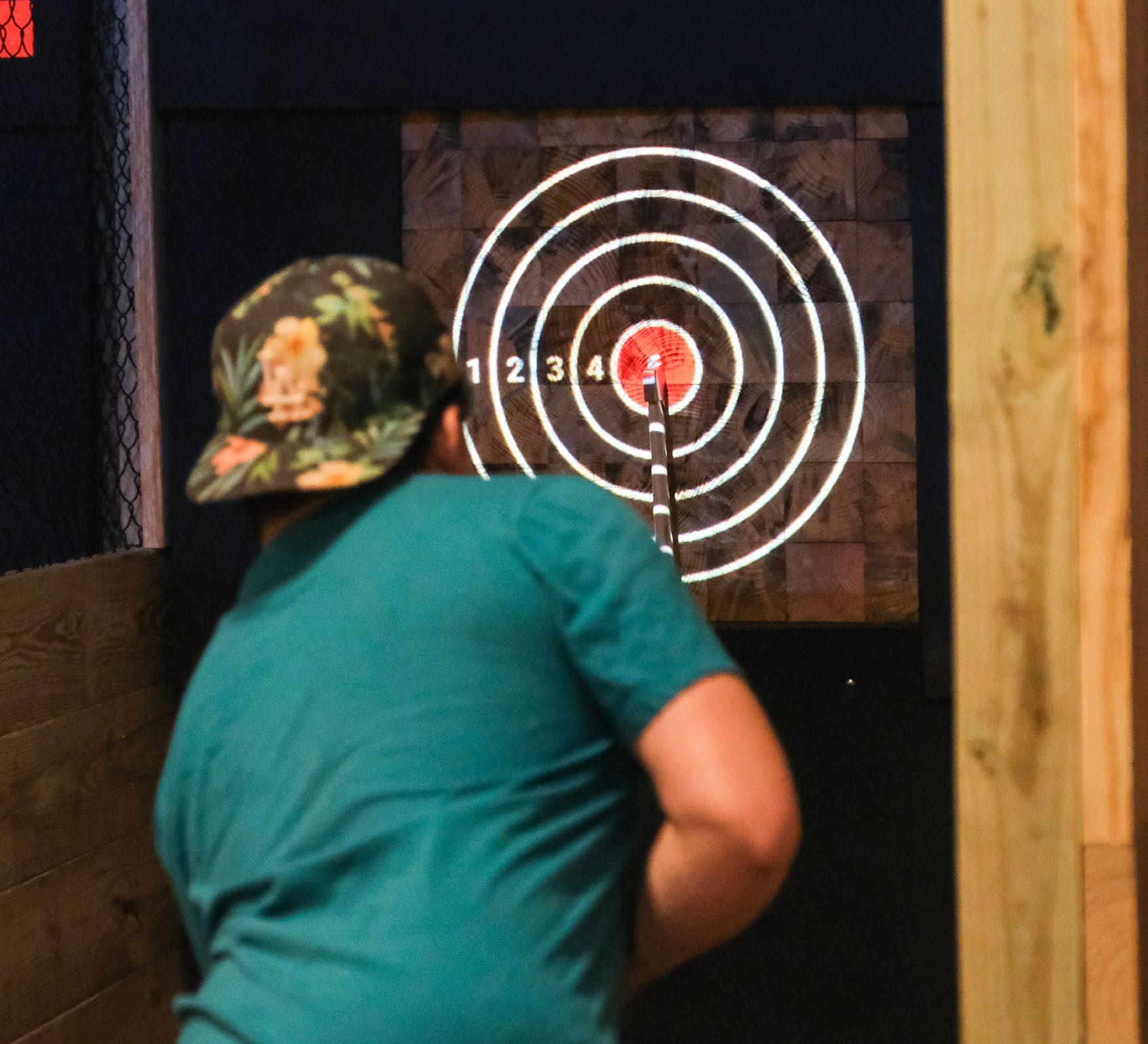 strung people so we’ve axe-thrown before, we love it but my big gest complaint with axe-throwing was I got bored in about 10-20 minutes because it was just repetitive to me and so that’s why we were really big on making sure there were different games where I’m like okay, I’m over this standard target, now let’s move on to Connect Four, tic-tac-toe or black jack so that’s kind of how we came about with this idea,” said Wallace.