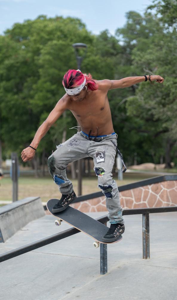 It is recommended that newcomers consider protective gear even when doing simple skills because falls can and will happen –– it’s just a part of the sport. Fortunately, with an ac tive local skate community, there are also a lot of experienced veterans to help guide you on your boarding adventures. And with skateboarding now an Olympic sport, who knows what the future could hold for a Seguin skater. •