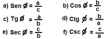 Las funciones trigonométricas son el seno, senØ; el coseno, cosØ, y la tangente, tanØ; cotangente, CtgØ; secante, SecØ y cosecante, CoscØ. Se definen como: