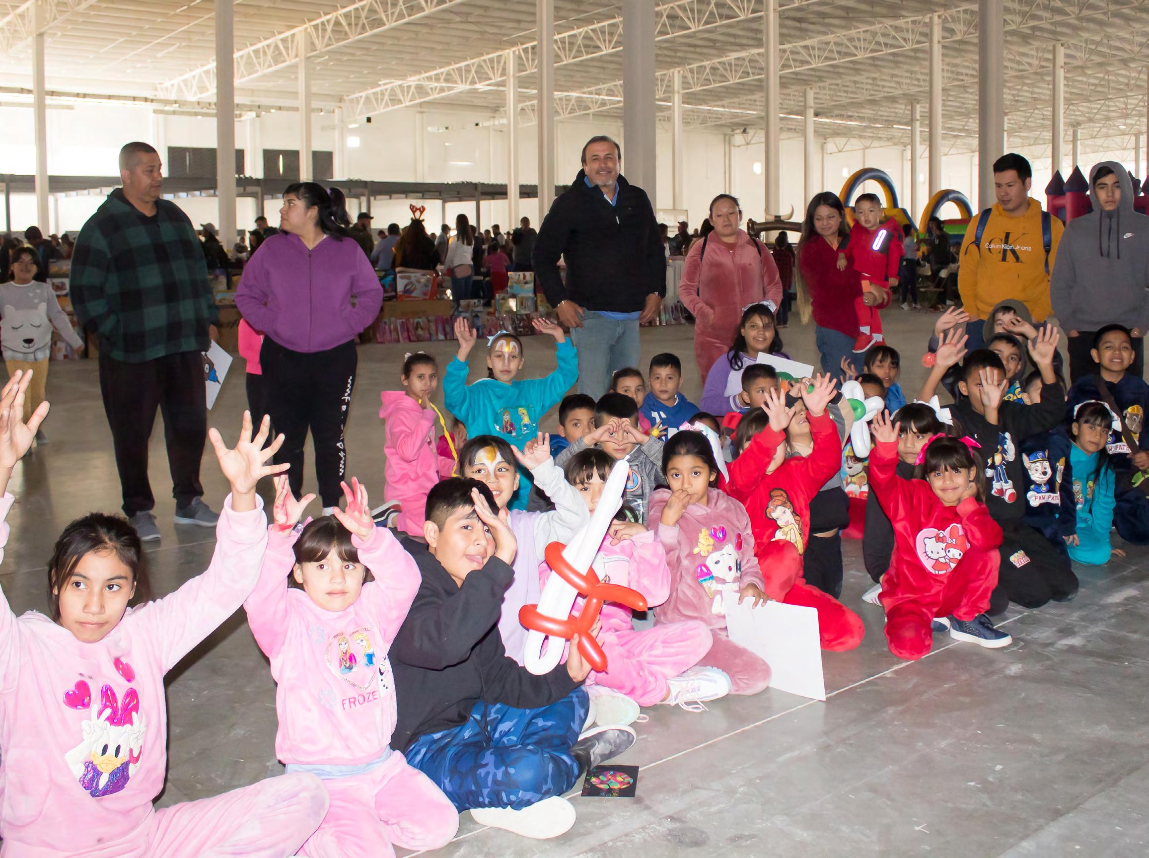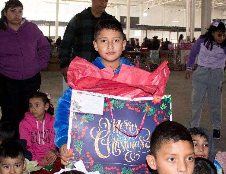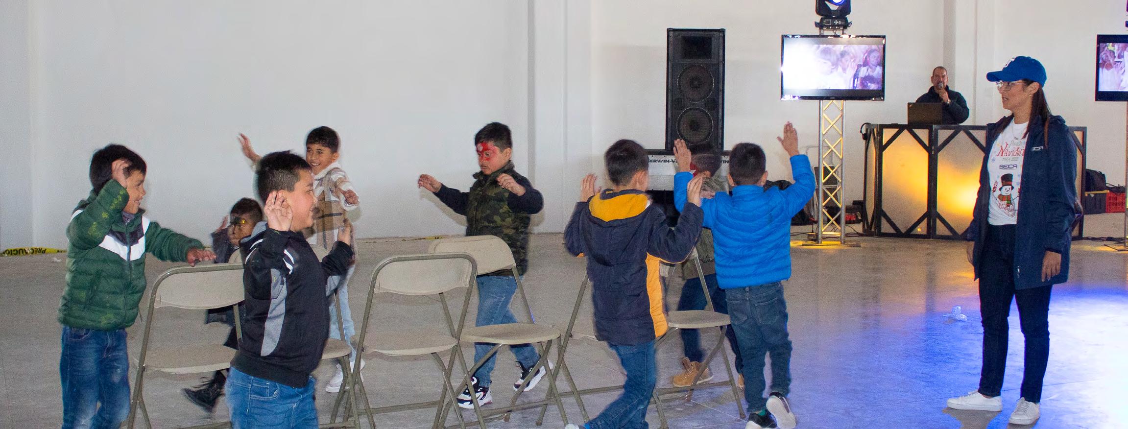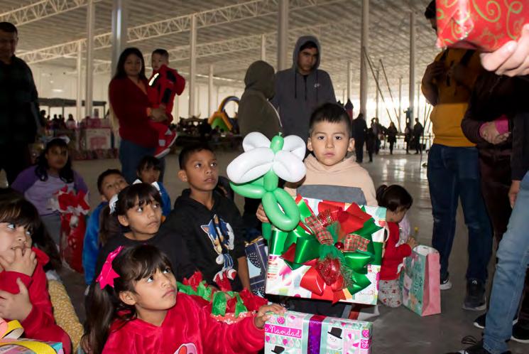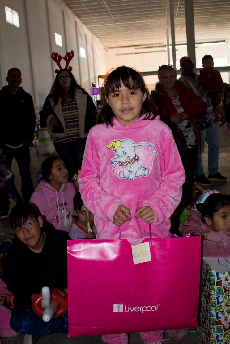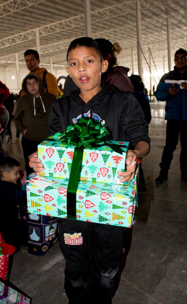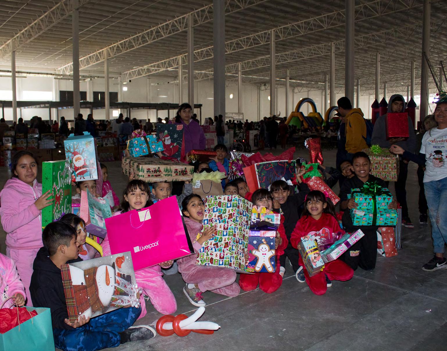 Niños de Casa Hogar Uriel recibiendo los regalos por parte de los colaboradores que apadrinaron a los niños.