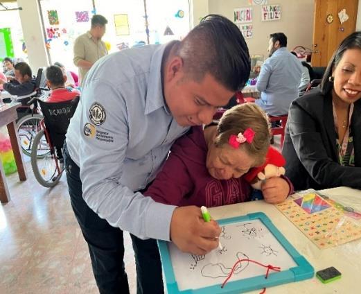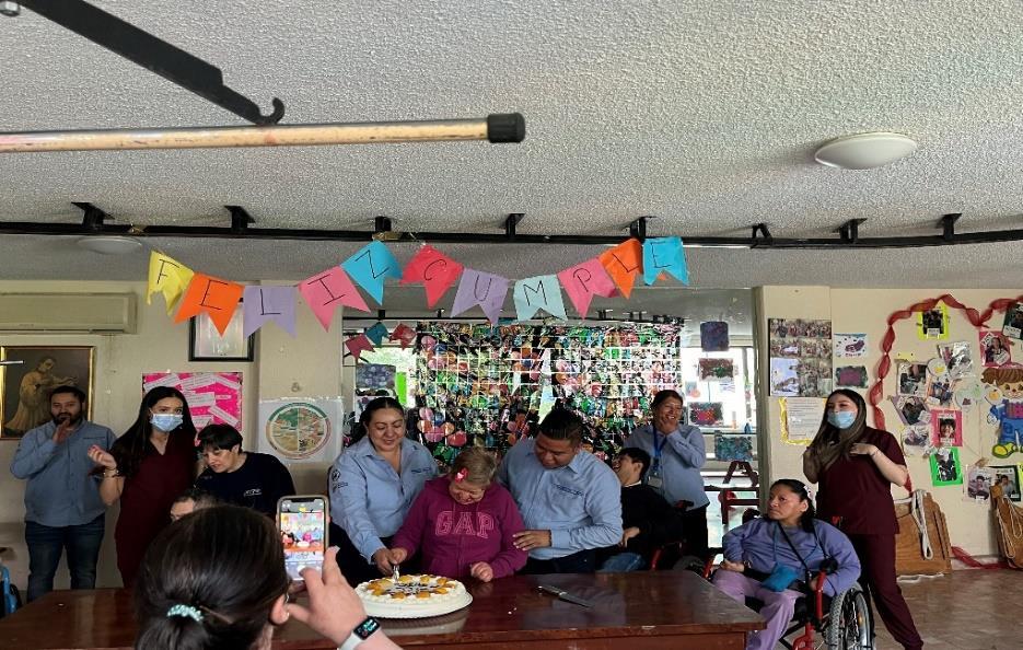 Infantil San Luis Gonzaga, para convivir con los chicos que viven en la Asociación con Capacidades diferentes, les otorgamos unos dulceros, juegos didácticos y un pastel con motivo de su celebración.