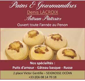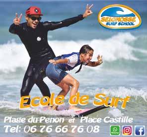 proximité est votre atout ! LOCATION CABANES, MOBILHOMES ET APPARTEMENTS www.les2etangs.com - Tél. +33 (0)5 58 41 66 99 les 2 etangs2018-75X70.indd 1 27/01/2018 17:38 JANVIER PLEINE MER BASSE MER DATE D-01 L-02 M-03 M-04 J-05 V-06 S-07 D-08 L-09 M-10 M-11 J-12 V-13 S-14 D-15 L-16 M-17 M-18 J-19 V-20 S-21 D-22 L-23 M-24 M-25 J-26 V-27 S-28 D-29 L-30 M-31 HEURE 12:29 13:34 14:31 15:18 15:59 16:35 17:10 17:43 18:16 18:50 19:25 20:04 08:18 09:04 10:00 11:08 12:21 13:31 14:33 15:30 16:22 17:11 17:58 18:45 19:30 20:16 08:40 09:31 10:32 11:46 13:08 COEF. 051 051 054 059 065 069 073 074 074 073 069 065 059 053 047 044 046 049 059 072 085 096 103 105 101 091 078 064 050 040 038 HEURE 18:36 19:37 08:06 08:58 09:42 10:23 10:59 11:34 12:07 12:40 13:15 13:52 14:34 15:21 16:18 17:25 18:34 19:37 08:04 09:01 09:55 10:46 11:35 12:23 13:09 13:56 14:43 15:34 16:35 17:53 19:14 MARS PLEINE MER BASSE MER DATE M-01 J-02 V-03 S-04 D-05 L-06 M-07 M-08 J-09 V-10 S-11 D-12 L-13 M-14 M-15 J-16 V-17 S-18 S-19 L-20 M-21 M-22 J-23 V-24 S-25 D-26 L-27 M-28 M-29 J-30 V-31 HEURE 12:43 14:06 14:54 15:29 16:01 16:31 17:01 17:30 17:59 18:28 19:00 19:36 07:56 08:46 10:00 11:39 13:12 14:21 15:13 15:57 16:37 17:16 17:52 18:28 19:04 08:28 09:09 10:00 11:18 13:05 14:30 COEF. 028 030 040 052 064 074 081 087 090 090 086 079 069 057 044 037 038 051 070 088 102 109 110 105 094 079 063 046 031 024 026 HEURE 18:48 19:59 08:37 09:17 09:51 10:22 10:52 11:21 11:50 12:19 12:50 13:24 14:02 14:52 16:03 17:46 19:16 07:51 08:46 09:32 10:14 10:55 11:34 12:13 12:52 14:30 15:11 16:00 17:17 19:04 08:08 MAI PLEINE MER BASSE MER DATE L-01 M-02 M-03 J-04 V-05 S-06 D-07 L-08 M-09 M-10 J-11 V-12 S-13 D-14 L-15 M-16 M-17 J-18 V-19 S-20 D-21 L-22 M-23 M-24 J-25 V-26 S-27 D-28 L-29 M-30 M-31 HEURE 15:11 15:47 16:20 16:53 17:26 18:01 18:38 19:19 20:05 08:36 09:40 10:59 12:24 13:36 14:35 15:25 16:08 16:48 17:25 18:02 18:38 19:15 19:52 08:19 09:05 10:02 11:12 12:24 13:26 14:16 14:59 COEF. 045 057 068 078 085 090 090 088 081 071 060 051 048 050 059 070 079 085 087 087 083 077 069 060 050 041 035 034 035 042 051 HEURE 08:57 09:33 10:05 10:38 11:10 11:44 12:20 12:59 13:42 14:31 15:32 16:49 18:14 19:27 08:03 08:56 09:41 10:23 11:03 11:42 12:19 12:56 13:33 14:13 14:58 15:54 17:02 18:11 19:14 20:07 08:40 FÉVRIER PLEINE MER BASSE MER DATE M-01 J-02 V-03 S-04 D-05 L-06 M-07 M-08 J-09 V-10 S-11 D-12 L-13 M-14 M-15 J-16 V-17 S-18 D-19 L-20 M-21 M-22 J-23 V-24 S-25 D-26 L-27 M-28 HEURE 14:19 15:10 15:49 16:23 16:55 17:26 17:57 18:26 18:57 19:30 20:08 08:24 09:13 10:22 11:49 13:16 14:27 15:25 16:13 16:58 17:40 18:21 19:00 19:39 08:03 08:47 09:42 11:00 COEF. 040 047 056 065 072 078 081 082 081 078 072 063 054 045 040 042 052 069 086 100 109 112 107 097 082 065 047 033 HEURE 07:55 08:51 09:35 10:12 10:46 11:18 11:48 12:19 12:49 13:21 13:56 14:35 15:25 16:33 18:01 19:24 07:57 08:57 09:48 10:34 11:18 12:01 12:43 13:24 14:06 14:50 15:45 17:06 AVRIL PLEINE MER BASSE MER DATE S-01 D-02 L-03 M-04 M-05 J-06 V-07 S-08 D-09 L-10 M-11 M-12 J-13 V-14 S-15 D-16 L-17 M-18 M-19 J-20 V-21 S-22 D-23 L-24 M-25 M-26 J-27 V-28 S-29 D-30 HEURE 15:20 15:56 16:28 16:59 17:29 17:59 18:29 19:01 19:35 07:55 08:39 09:37 10:59 12:38 14:02 15:03 15:52 16:34 17:13 17:49 18:25 19:00 19:35 08:00 08:40 09:30 10:39 12:11 13:32 14:28 COEF. 036 049 061 073 082 088 092 092 089 081 070 057 044 039 042 056 072 087 097 101 101 095 086 074 060 046 034 027 027 034 HEURE 09:05 09:45 10:17 10:47 11:17 11:47 12:17 12:48 13:21 13:58 14:41 15:36 16:54 18:36 07:24 08:33 09:25 10:08 10:49 11:28 12:06 12:44 13:21 13:58 14:38 15:25 16:33 18:01 19:23 08:12 Calendrier des marées www.artiga.fr Tel 05 58 47 62 34 NOTRE MAGASIN D’USINE 5 RUE BREMONTIER - 40140 MAGESCQ Toiles Basques. Déco Maison. Cuisine. Bain. Accessoires. Outdoor. SUDACTEUR Insertion Seignosse 2023 x Artiga.pdf 2 11/01/2023 11:04:35 B2 A6 B2 H4 H6 H3 G6 B2 H6 G2 K6 B1 OUVERT D’AVRIL À NOVEMBRE PLAN & MARÉES 2023