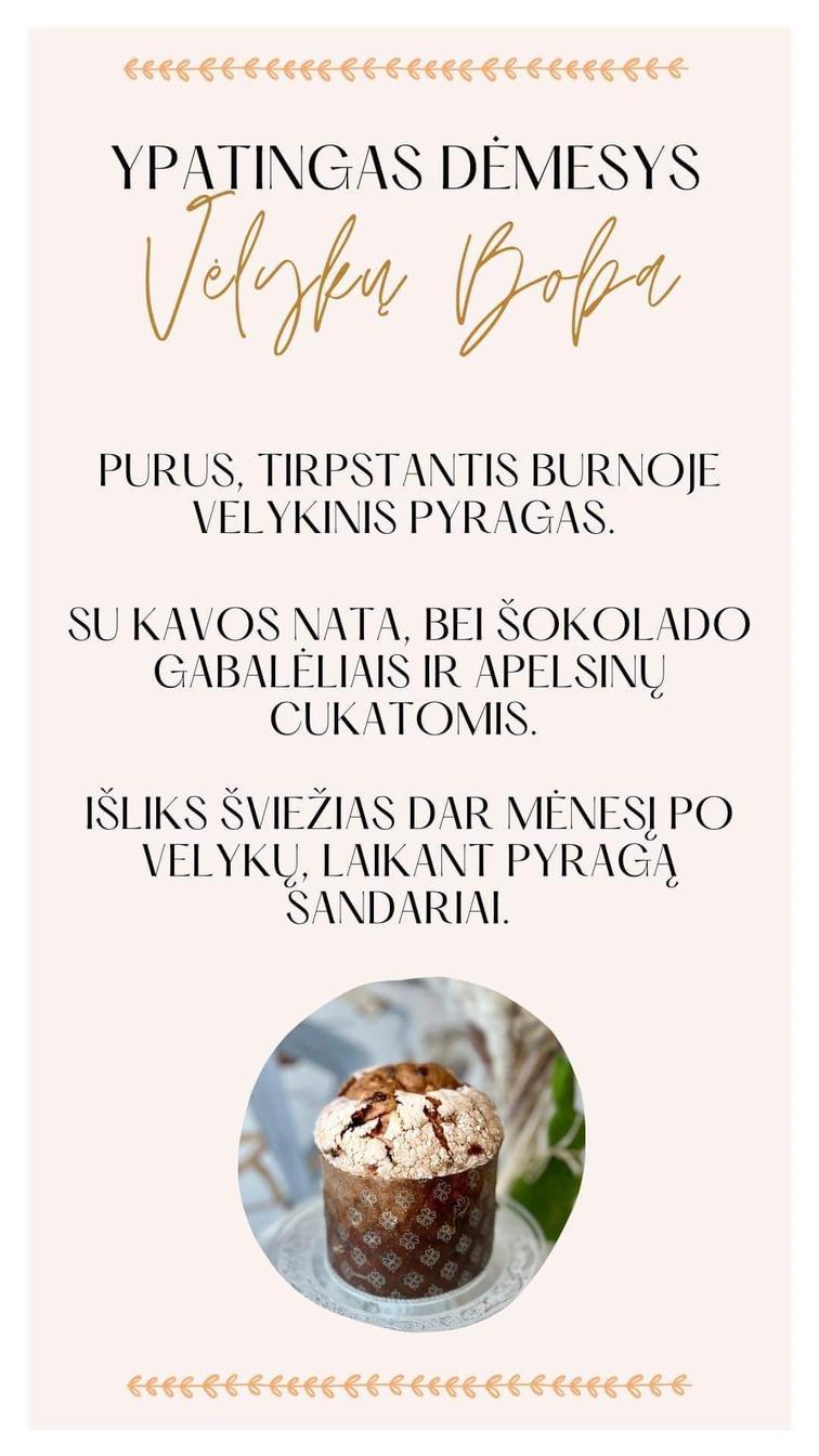 Puošimas bus standartinis + bus įterpta skanių, valgomų Velykinių motyvų – spalvotų kiaušinukų, šokoladinių velykinės tematikos dekoracijų ir pan. Tortų svoriai nurodyti su standartiniu papuošimu.