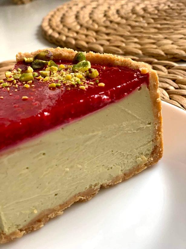 Pistaciju CheeseCake su aviečių confi