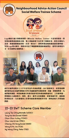 22-23 SWT Scheme Core Member Leung Tsz Ching,Michelle (WDSC) Tong Kai Him,Daniel (YDAH) Chan Chun Yu,Roy (TOHC) Chan Wai Ki,Yuki (TPRC) Cheung Chi Hung,Daniel (HMM) Wong Ki Po, Iris (TCIS) Ng Wang Ching ,Peter (TISE)