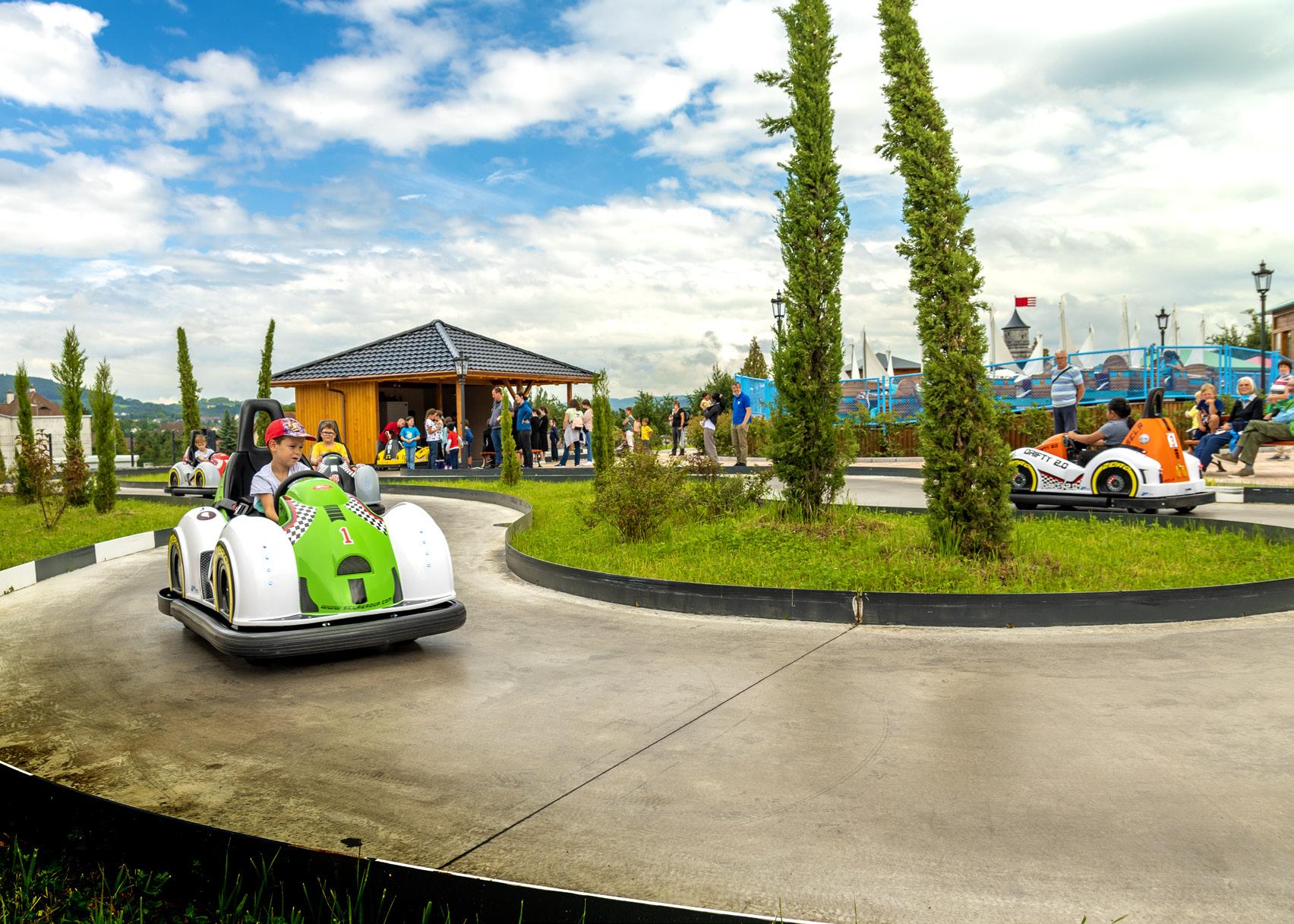 The area can also include several battery car tracks or bumper boat pools of different sizes and types, which thanks to the theme chosen by the customer merge into a single entertainment area.