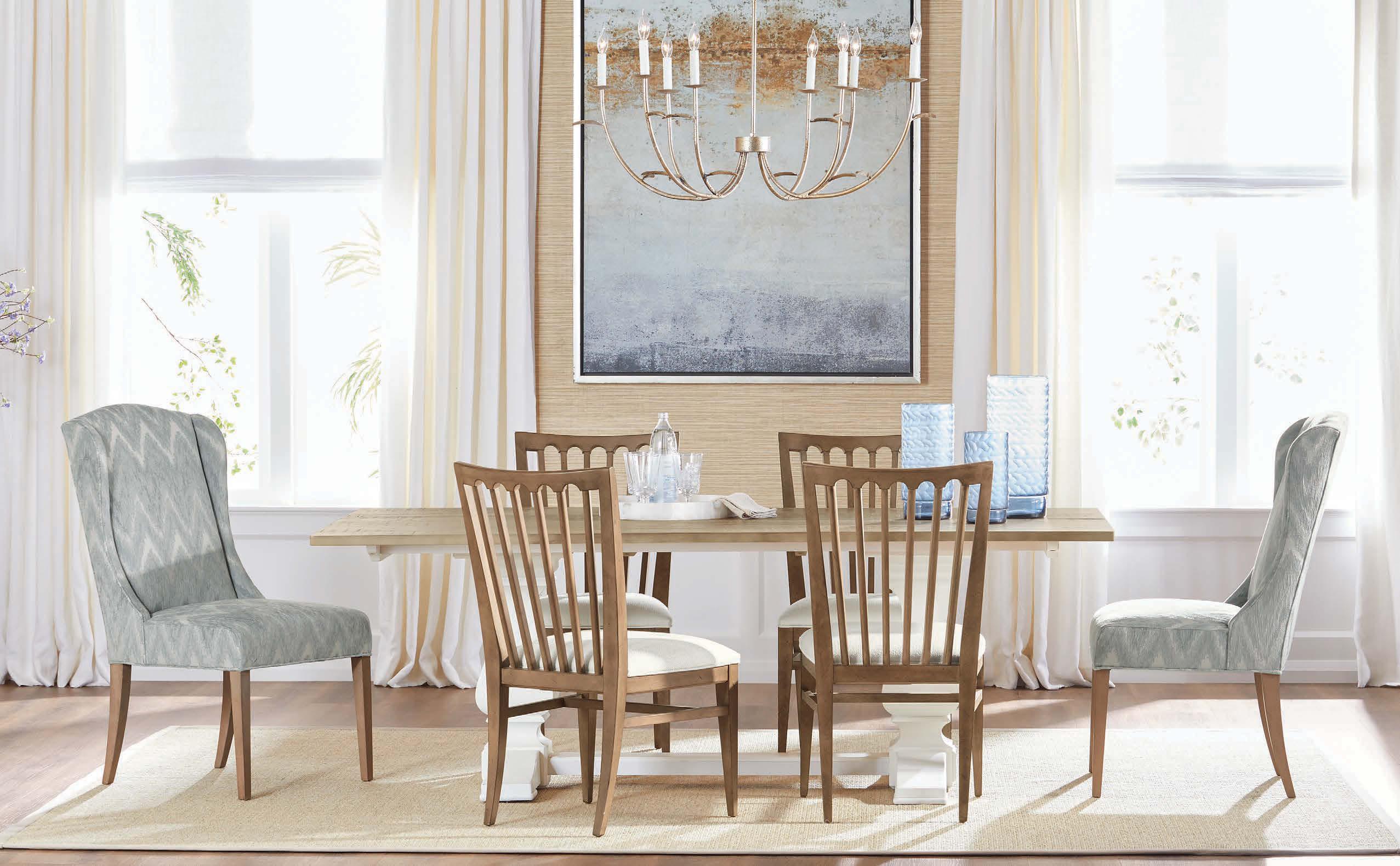 When we found abundant, brushy textures in this desert dining spot, it was only natural to complement them with our wire-brushed Bridgewater Cove dining table and woven Marteena chairs.