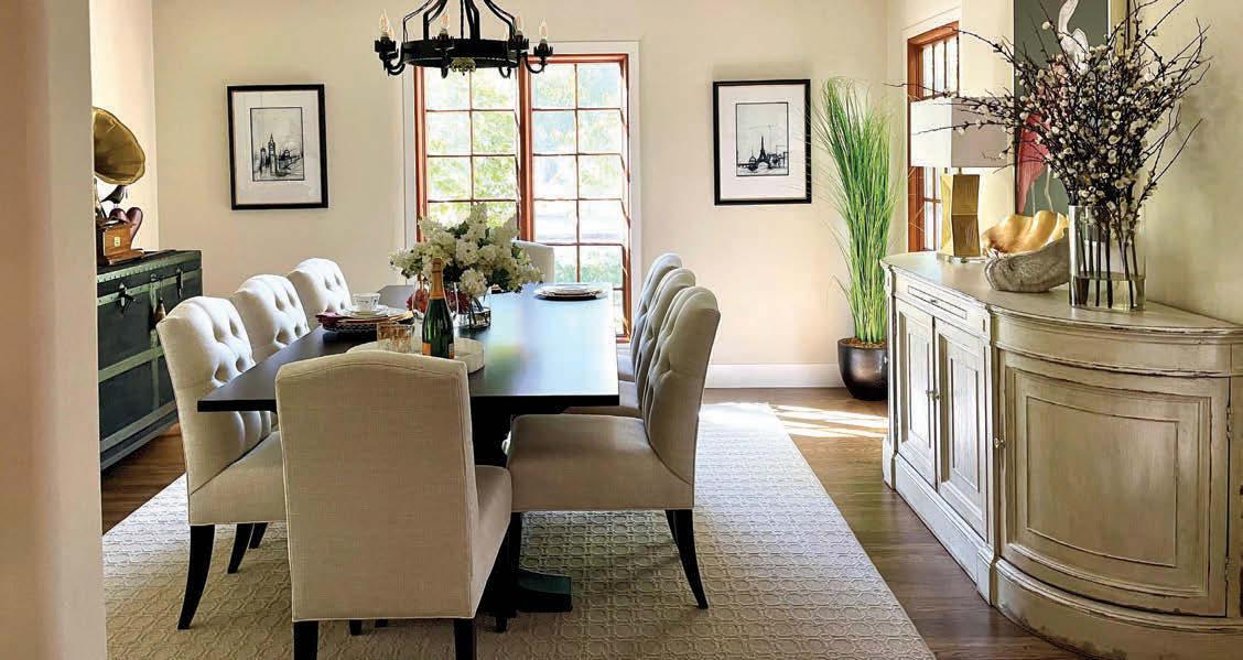 The couple already owned a collection of vintage pieces and, when they toured the Design Center, the wife fell in love with our Red Heron artwork for their reclaimed dining room. “It perfectly complemented the vintage floral art they were gifted by husband’s mother, so coral red became the accent color that would pop the home’s palette.”