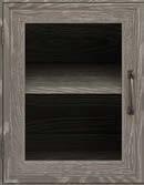 UPPER OPEN SHELVES UPPER GLASS-PANEL DOORS