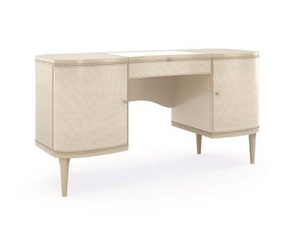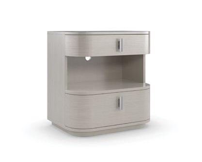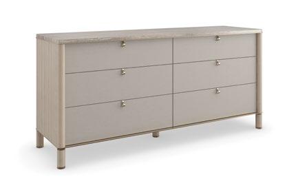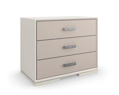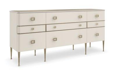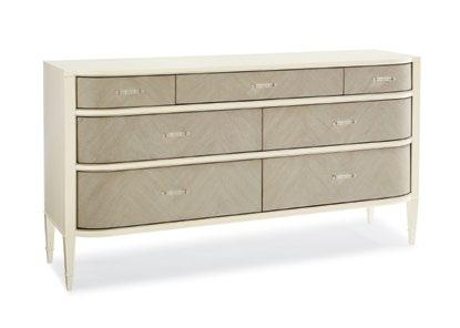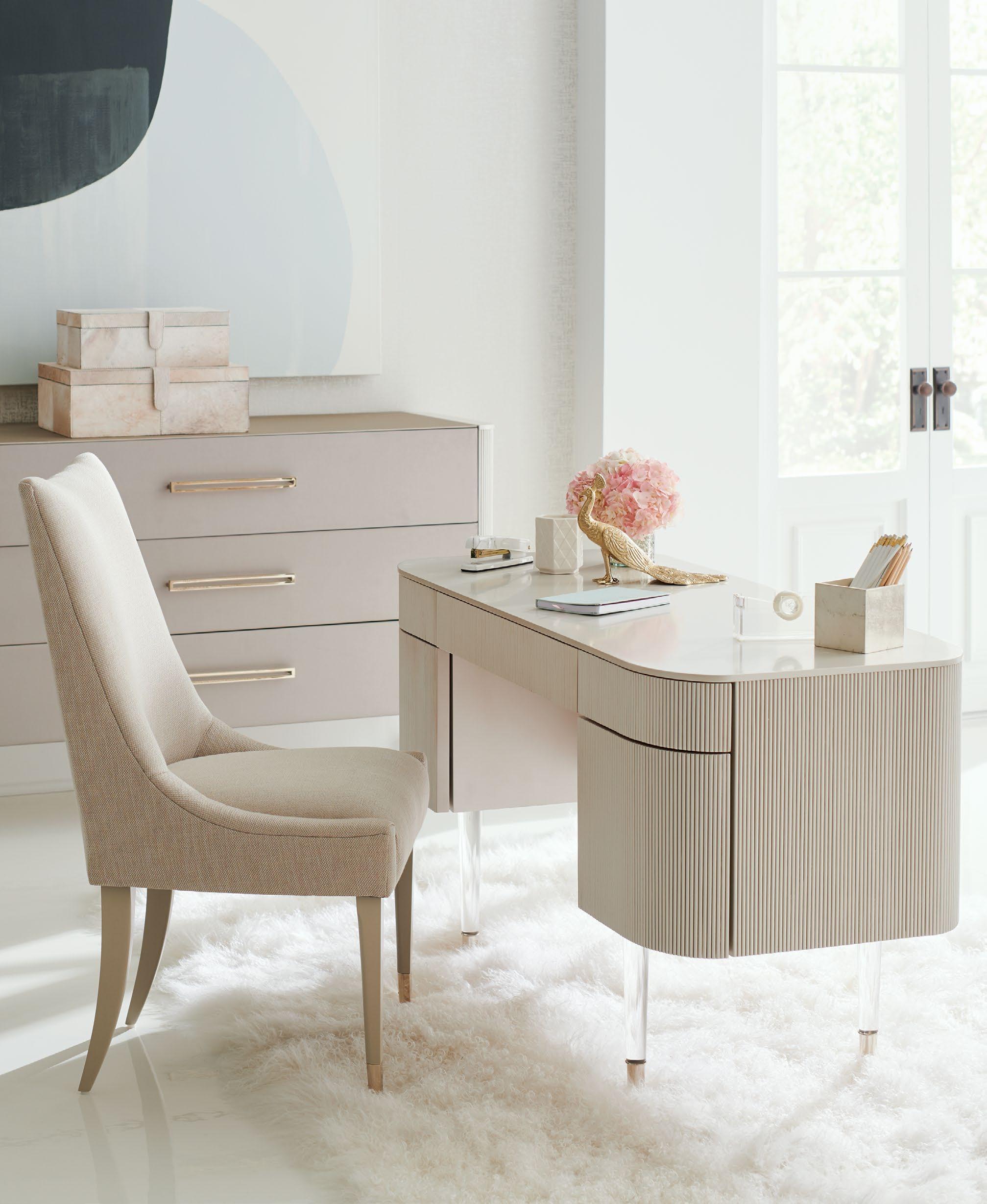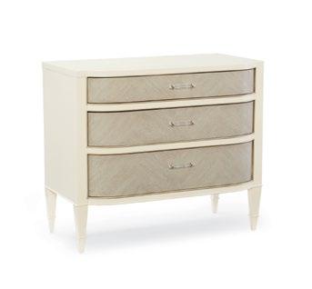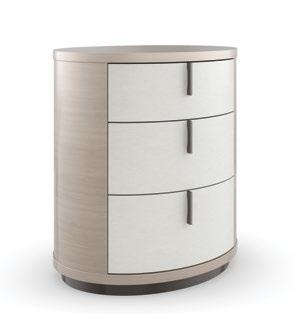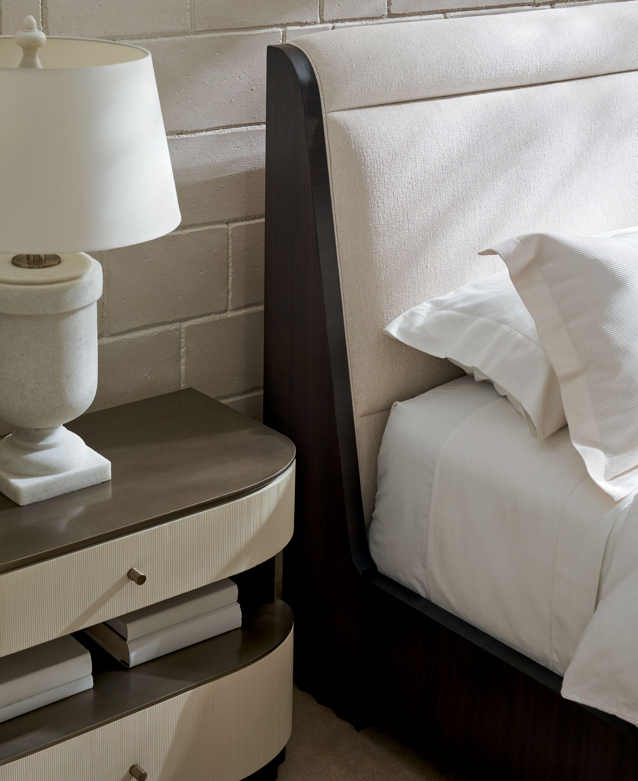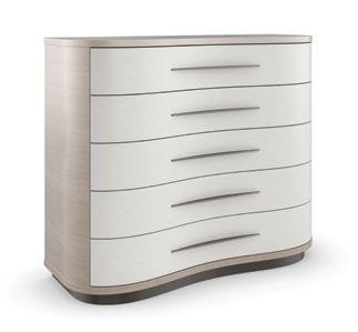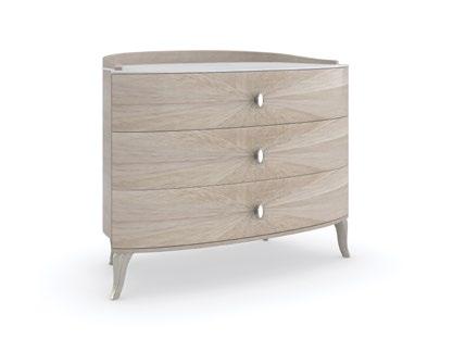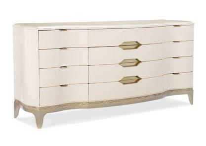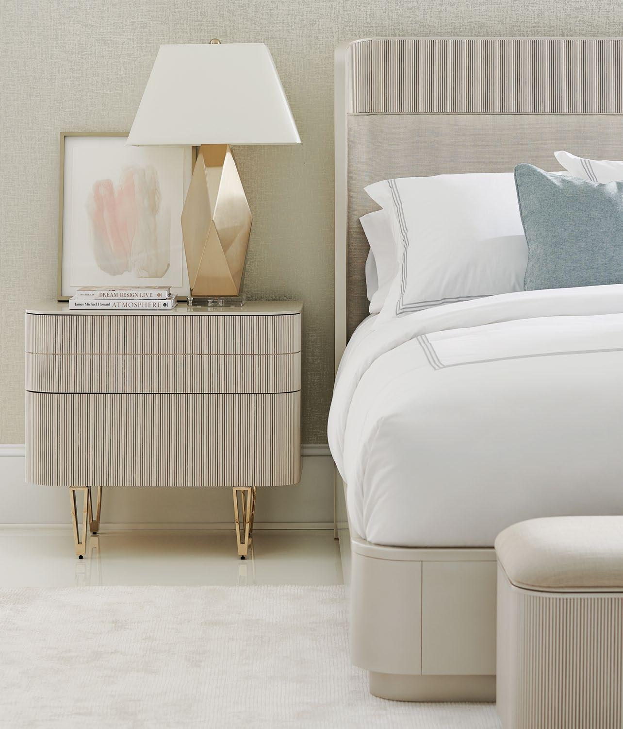 Quintessential Caracole: softly curved silhouettes in a Matte Pearl finish are warmly accentuated with a Whisper of Gold. Exquisite micro-fluting details add visual appeal and a gentle rhythm to bedroom interiors.