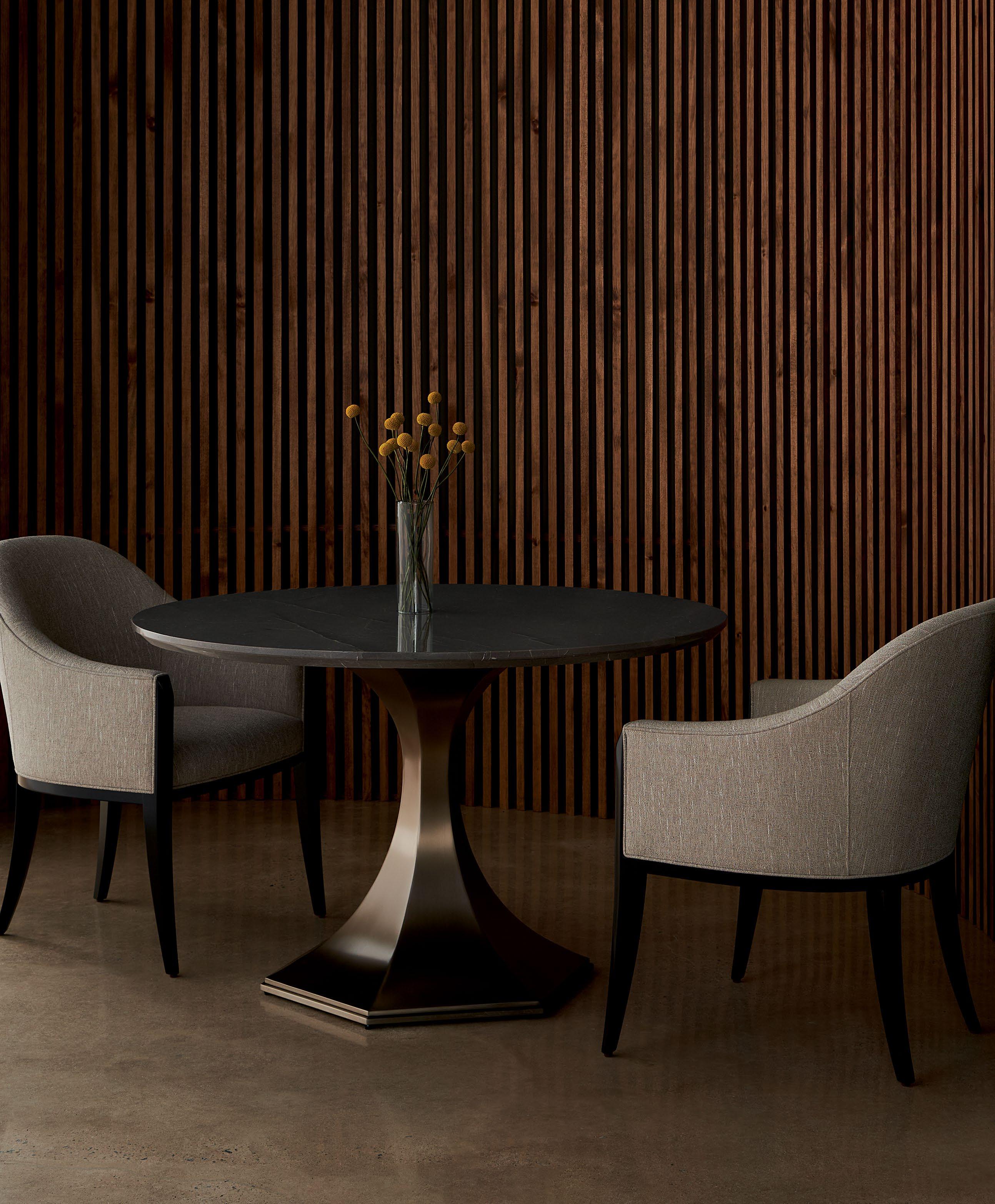 Winner of the Luxury Dining Pinnacle AwardCaracole Director of Product Development Christopher Sandomenico elaborates on this season’s surprising and innovative use of materials and finishes to create an oldworld yet contemporary design aesthetic.