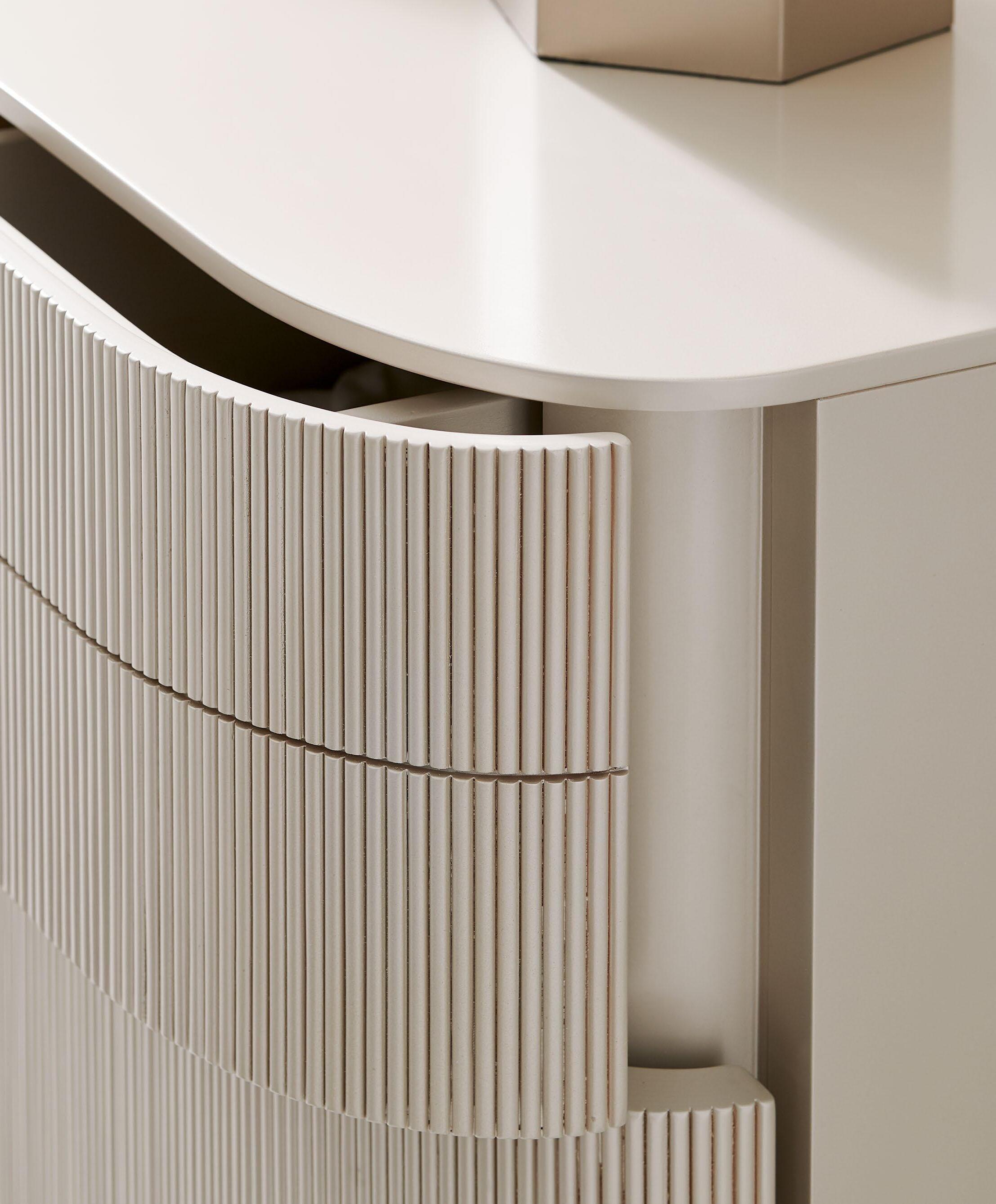 Subverting traditional elements borrowed from Greco-Roman architecture, fluting is large in scale and adds a bold graphic pattern.