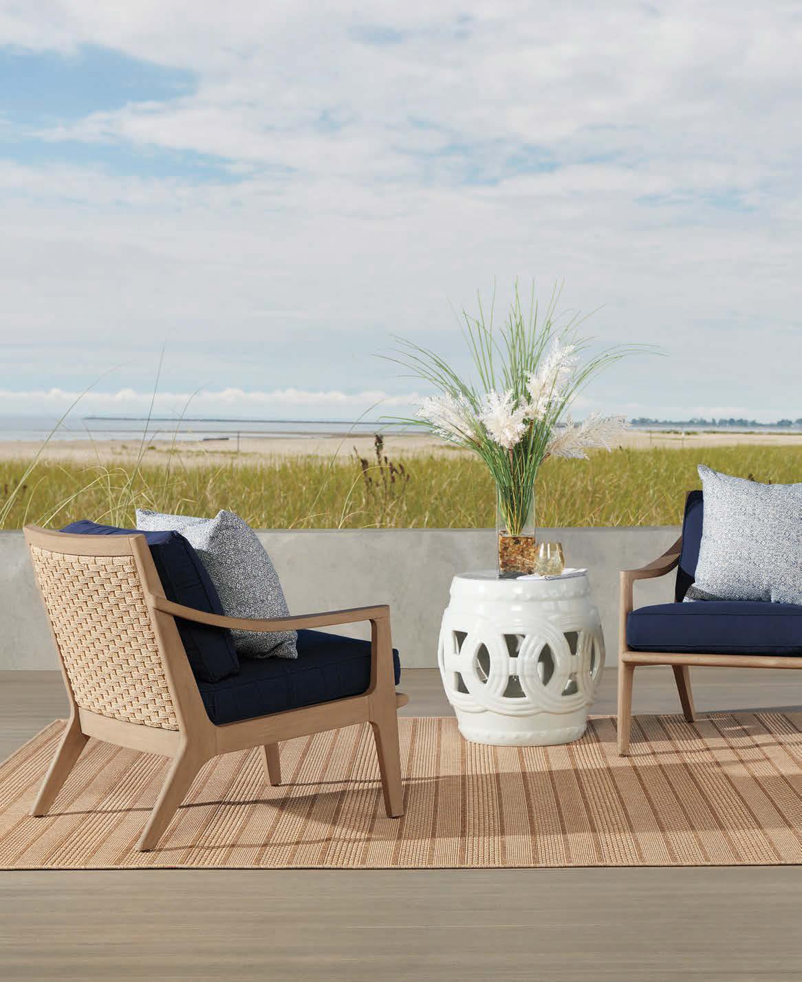 MARTEENA ’ S TEAK FRAMES AND MODERN LINES MAKE THEM PERFECT PARTNERS TO THE BRIDGEWATER COVE COLLECTION.