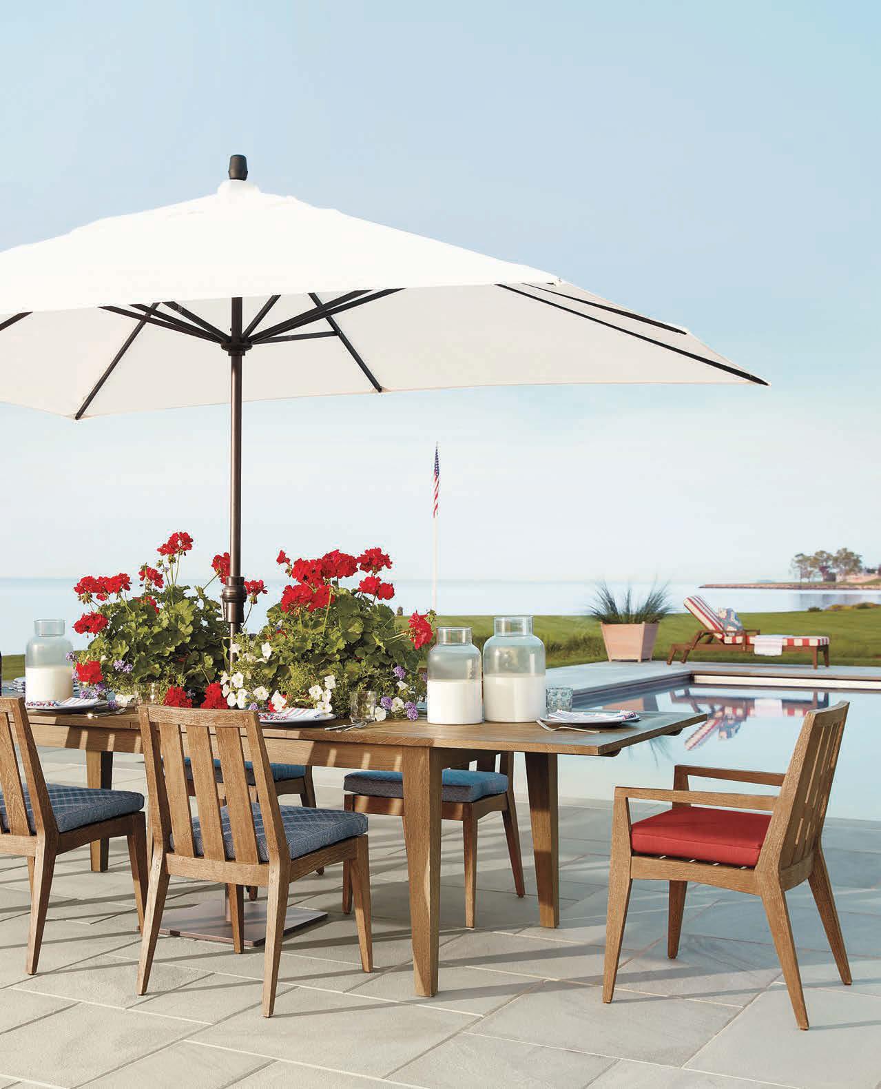 STREAMLINED SILHOUETTES LIKE THESE ARE THE PERFECT SETTING FOR ENJOYING SEASIDE VIEWS. OUR ALL-TEAK BRIDGEWATER COVE COLLECTION IS BELOVED FOR ITS MODERN PROFILES THAT JUST WORK IN ANY SETTING.