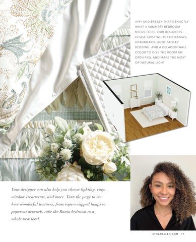 Your designer can also help you choose lighting, rugs, window treatments, and more. Turn the page to see how wonderful textures, from rope-wrapped lamps to papercut artwork, take the Rania bedroom to a whole new level.