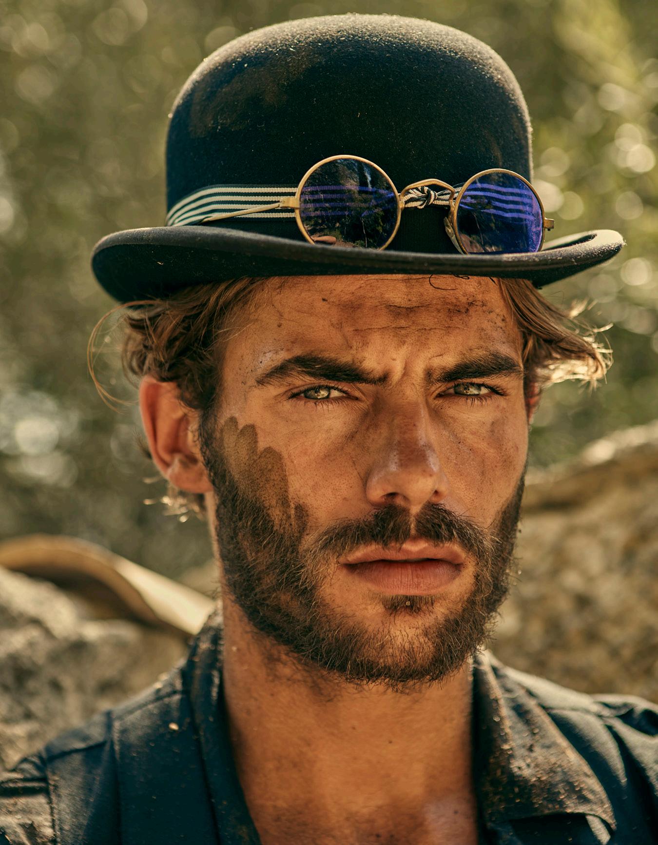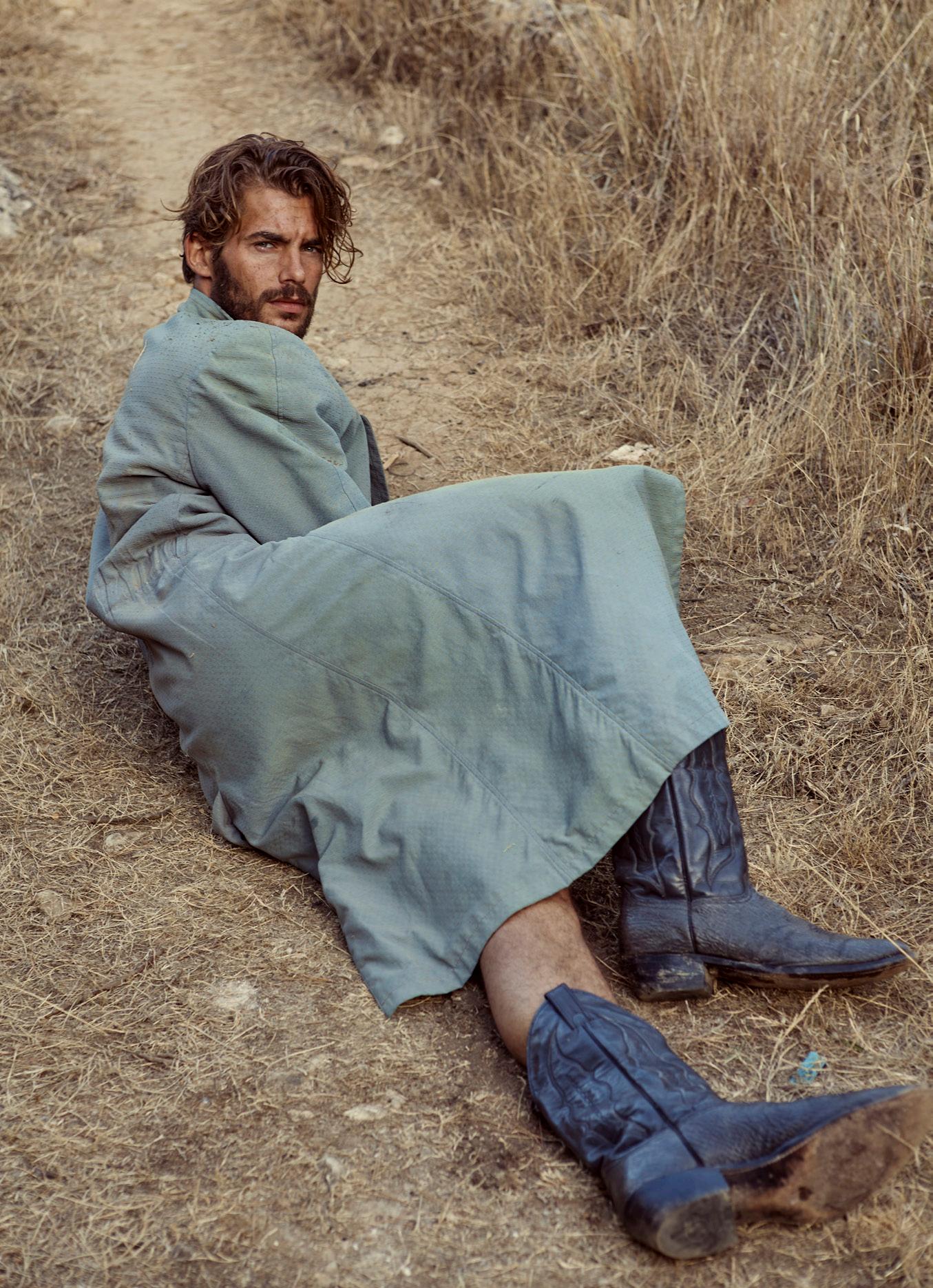 I have known and photographed Jacey since he was knee high to a grasshopper ,he has matured from an artful dodger in fagins camp ito a fine wholesome gentelman brimming with positive energh ,sporting a wonderful wife and three children he ranks among one of the nicest special models i have had the pleasure to know . the dirty cowboy story really suits him and we played the harmonica song from once upon a time in the west to get the best cowboy out of him . someone should send this magazine to clint eastwood whom he reminds me very much of, only getting better with age, and his unique charm .and to you clients hes not averse to helping you with all your bags, he will use them for free gymn practice . well played jacey . lawrence james thomas photographer and stylist for this story .