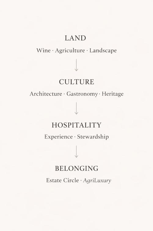 Across the global portfolio of estates — from Patagonia to Napa Valley, from Tuscany to the Barossa — hospitality already operates within the context of agriculture, stewardship, and cultural landscape.