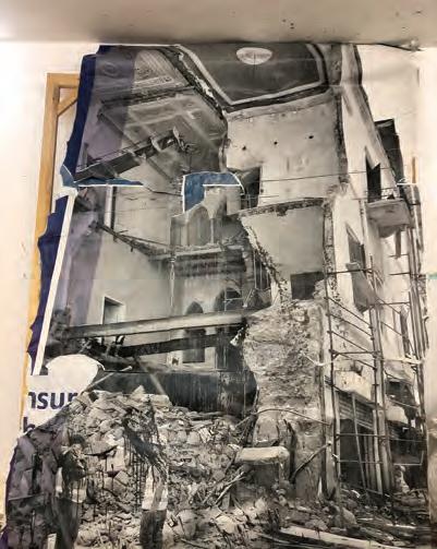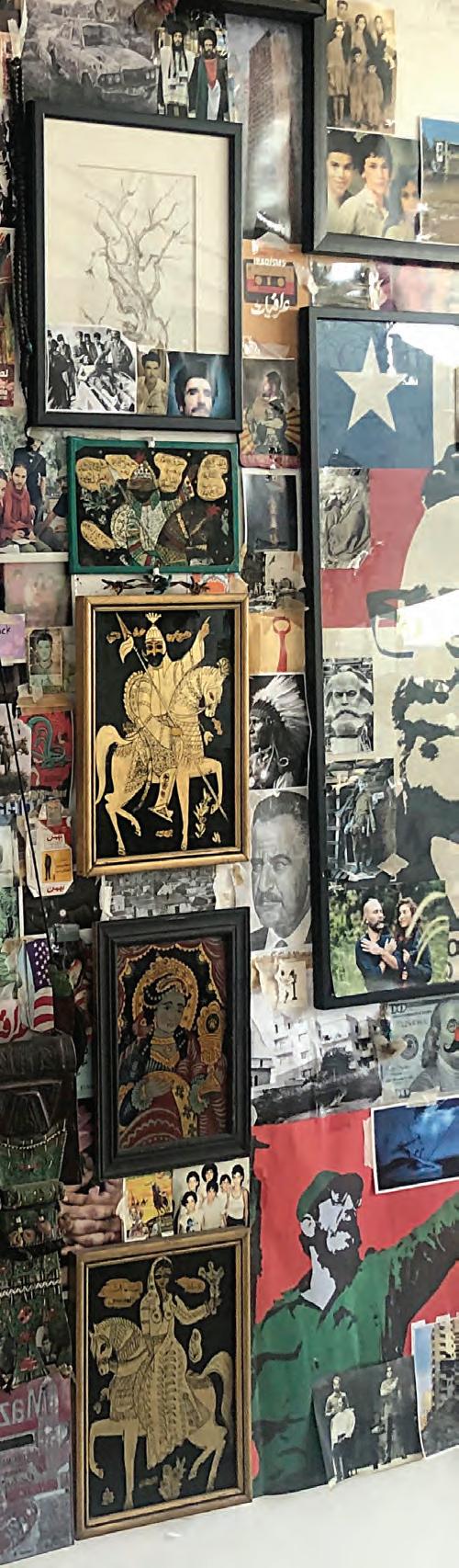 Opposite page – Wall Installation composed of family pictures and memorabilia created on the Baalbaki’s wall during confinement.