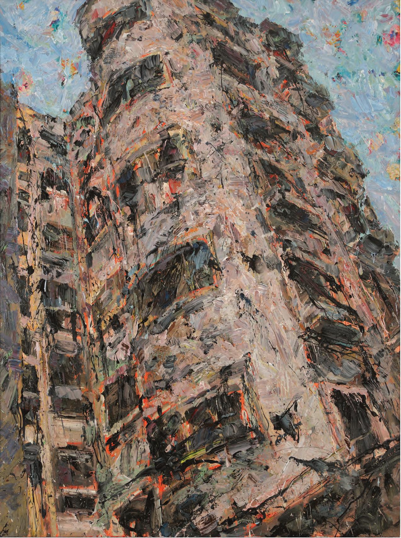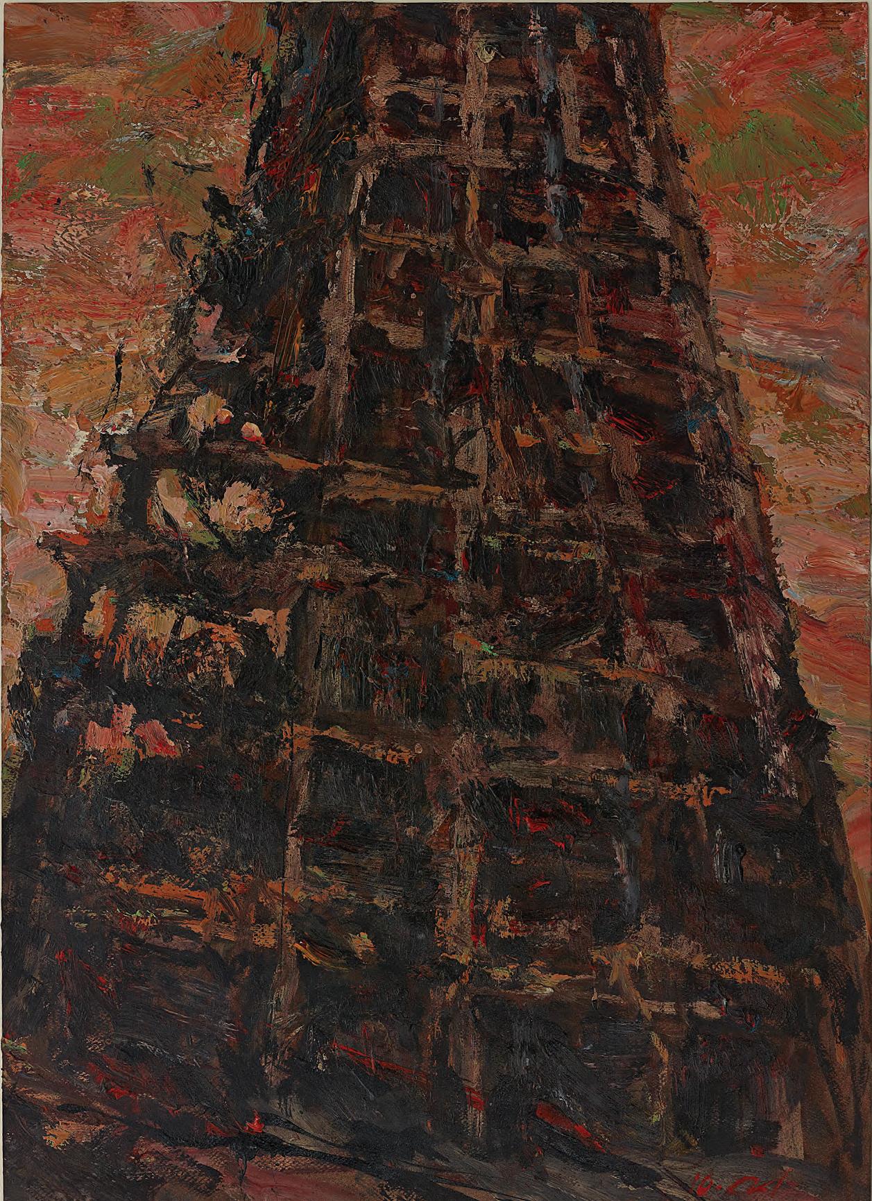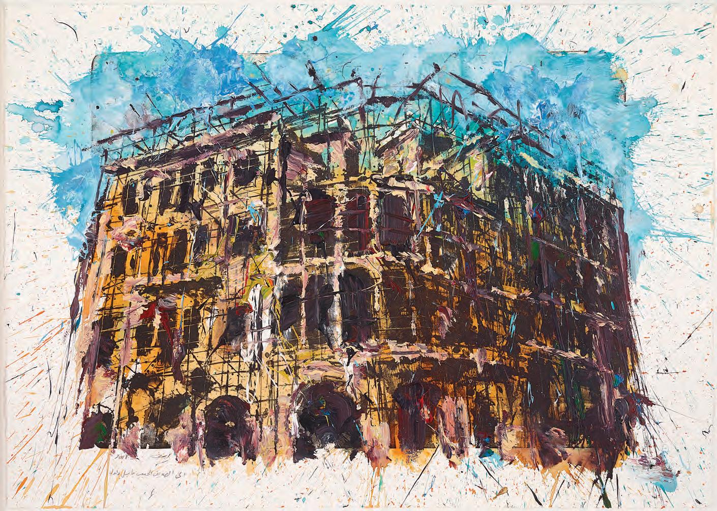 Ayman Baalbaki, Rue de Damas, 2011. Acrylic on paper, 70 x 50 cm. Painting of Burj al-Murr in Beirut. © The Trustees of the British Museum