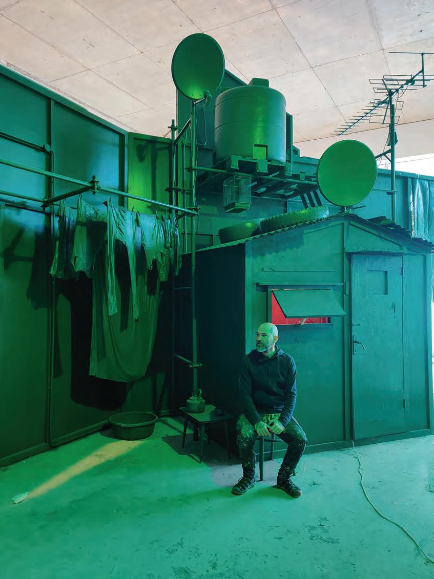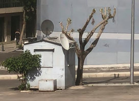 “Go to the back”, he said. I entered behind the installation. Behind the scenes of the well-known photo of the city stabbed in the chest as if with a cross or a silver knife, I found a janitor’s room, with all its junk and lawful poverty. A clothesline. A dangling ball - or an orange - in a sport sock. A TV antenna. A small satellite dish. And through the cracks of that hut-room-house-shelter-tent was my friend’s reinterpretation of Kabakov’s installation. Ayman insisted on spraying it all with the metallic khaki military colour that completely and cruelly contradicted the facade of the city which had come to resemble a toilet filled with the filth of this world. The city which, after being closed for two years, had exploded, because it won’t - and does not want to - provide a healthcare system to its residents.