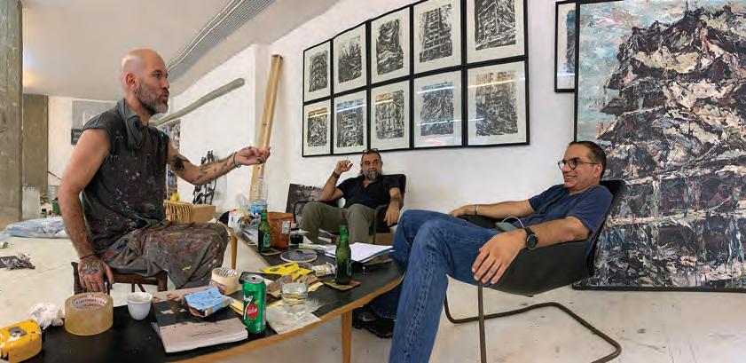 Throughout this issue we have invited key figures who have had a special relationship with the artist and his work. They have each written a personal piece about him. Founder of Dalloul art foundation and collector Basel Dalloul whose late father collected a large amount of his works. Basel developed a very close friendship to Ayman and documented a lot of his studio time.