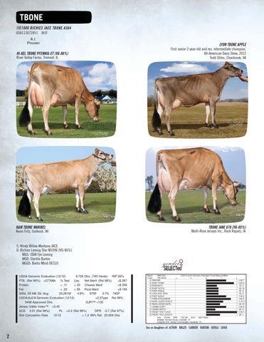 USDA Genomic Evaluation (12/12) 8,726 Dtrs. (760 Herds) RIP 26% PTA (Rel 99%) +277Milk % Test Lbs. Net Merit (Rel 98%) +$ 267 Protein + .11 + 30 Cheese Merit +$ 356 Fat + .23 + 56 Fluid Merit +$ 195 305d, 2X ME Dtr. Avg. 20,261M 4.8% 975F 3.7% 745P USDA/AJCA Genomic Evaluation (12/12) +2.0Type Rel 99% 5498 Appraised Dtrs GJPI™ +130 Jersey Udder Index™ +3.45 SCS 3.01 (Rel 99%) PL +0.2 (Rel 96%) DPR -0.7 (Rel 97%) Sire Conception Rate 12/12 + 1.3 99% Rel 20,809 Obs