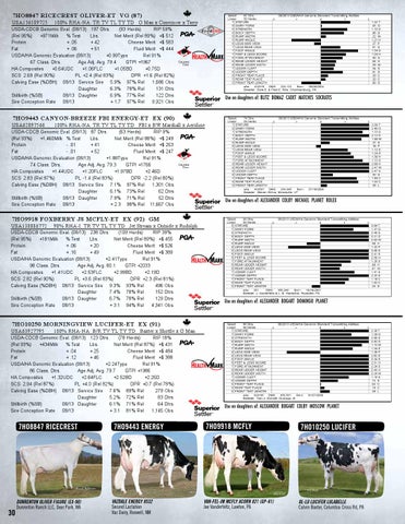 USA136109725 100% RHA-NA TR TV TL TY TD O Man x Convincer x Terry USDA-CDCB Genomic Eval. (08/13) 197 Dtrs. (93 Herds) RIP 59% (Rel 95%) +971Milk % Test Lbs. Net Merit (Rel 89%) +$ 512 Protein + .05 + 42 Cheese Merit +$ 583 Fat + .06 + 51 Fluid Merit +$ 444 USDA/HA Genomic Evaluation (08/13) +0.99Type Rel 91% 67 Class. Dtrs. Age Adj. Avg. 79.4 GTPI +1967 HA Composites +0.64UDC +1.06FLC +1.05BD +0.75D SCS 2.69 (Rel 90%) PL +2.4 (Rel 83%) DPR +1.6 (Rel 82%) Calving Ease (%DBH) 08/13 Service Sire 5.9% 97% Rel 1,686 Obs Daughter 6.3% 78% Rel 131 Dtrs Stillbirth (%SB) 08/13 Daughter 6.9% 77% Rel 122 Dtrs Sire Conception Rate 08/13 + 1.7 97% Rel 9,921 Obs
