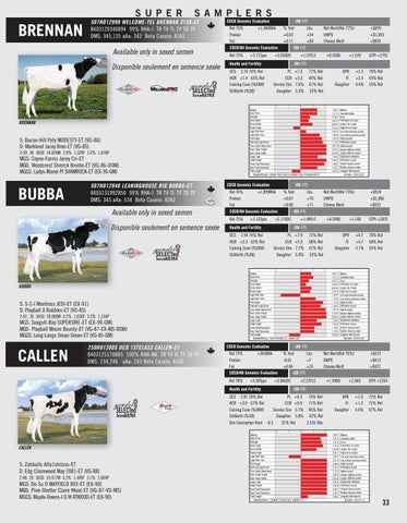 SCS 2.81 76% Rel PL +6.2 74% Rel DPR +1.0 72% Rel HCR +3.0 67% Rel CCR +0.9 71% Rel FI +1.3 71% Rel Calving Ease (%DBH) Service Sire 5.7% 85% Rel Daughter 4.6% 67% Rel Stillbirth (%SB) Daughter 5.8% 62% Rel Sire Conception Rate -0.2 91% Rel 2,535 Obs