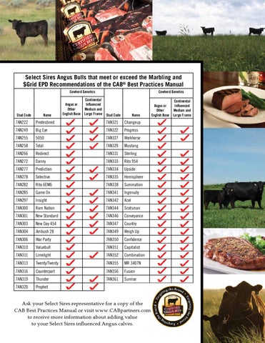 Select Sires Angus Bulls that meet or exceed the Marbling and $Grid EPD Recommendations of the CAB速 Best Practices Manual