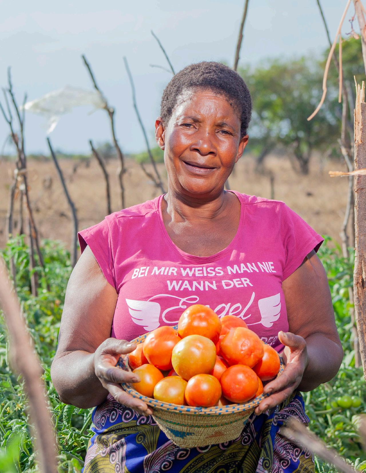 We work with women smallholder farmers like Edith Malambo in Zambia (pictured) to overcome barriers that limit their income potential.