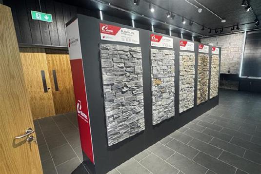 The Kildare showroom features standout displays of natural roofing slates, stone cladding, paving, and architectural products, offering hands-on inspiration and expert guidance.