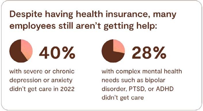 According to the 2023 State of Workforce Mental Health (Lyra) which surveyed more than 2,500 employees and more than 250 employee benefits leaders at companies in the United States with global workforces: