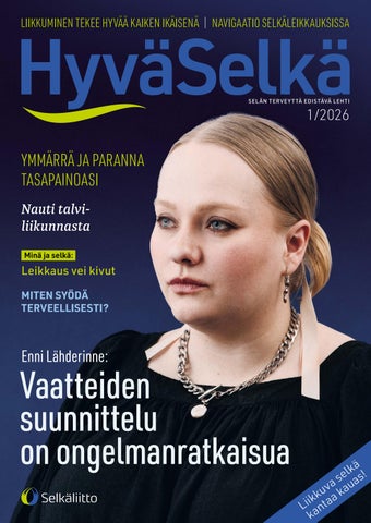 Selkäliitto on vuonna 1988 perustettu kansanterveysjärjestö ja selän hyvinvoinnin asiantuntija, joka kannustaa ihmisiä aktiiviseen selän itsehoitoon. Tietoa selästä ja ohjeita selän itsehoitoon on saatavilla Selkäliiton Selkäkanava.fi-palvelussa. Paikalliset selkäyhdistykset eri puolilla maata järjestävät ohjattua liikuntaa, vertaistukea sekä luento- ja virkistystilaisuuksia. #liikkuvaselkä Voit lukea täällä viimeisimpiä Hyvä Selkä -lehden numeroita digimuodossa. Painettu lehti on jäsenetu selkäyhdistysten jäsenille. Lehden voi myös tilata erikseen.