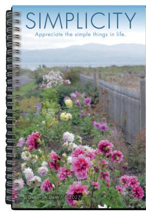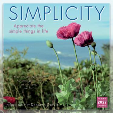 Artist Deborah DeWit finds beauty in life’s simple, everyday moments. From early morning dunescapes to quiet windowsill still lifes, her expressive photographs celebrate the rhythms of ordinary life. Each image is paired with thoughtful quotes on living simply, offering a peaceful pause and gentle reflection throughout your busy year. Simplicity is our longest running inspirational series.