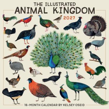This vintage-inspired calendar features Kelsey Oseid’s original gouache paintings celebrating the beauty and diversity of the natural world. Each month highlights a different taxonomic order, grouping creatures — from insects to land and sea mammals — in exquisite, finely detailed compositions.