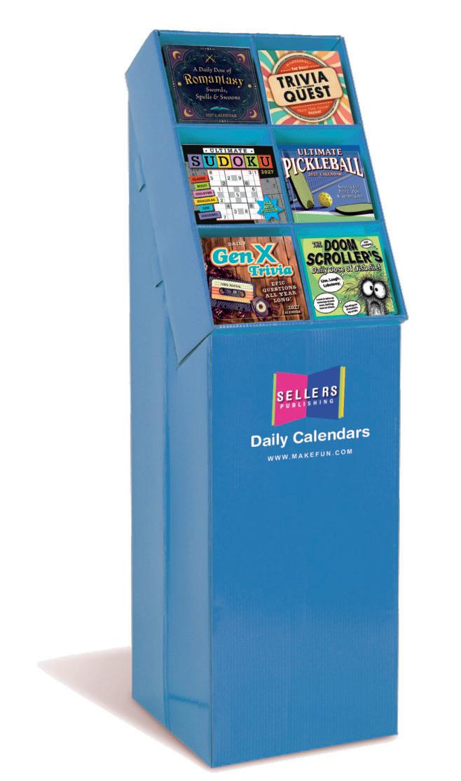 Item #DS12TIERCAL 12-Pocket Wall Calendar Floor Corrugate Display